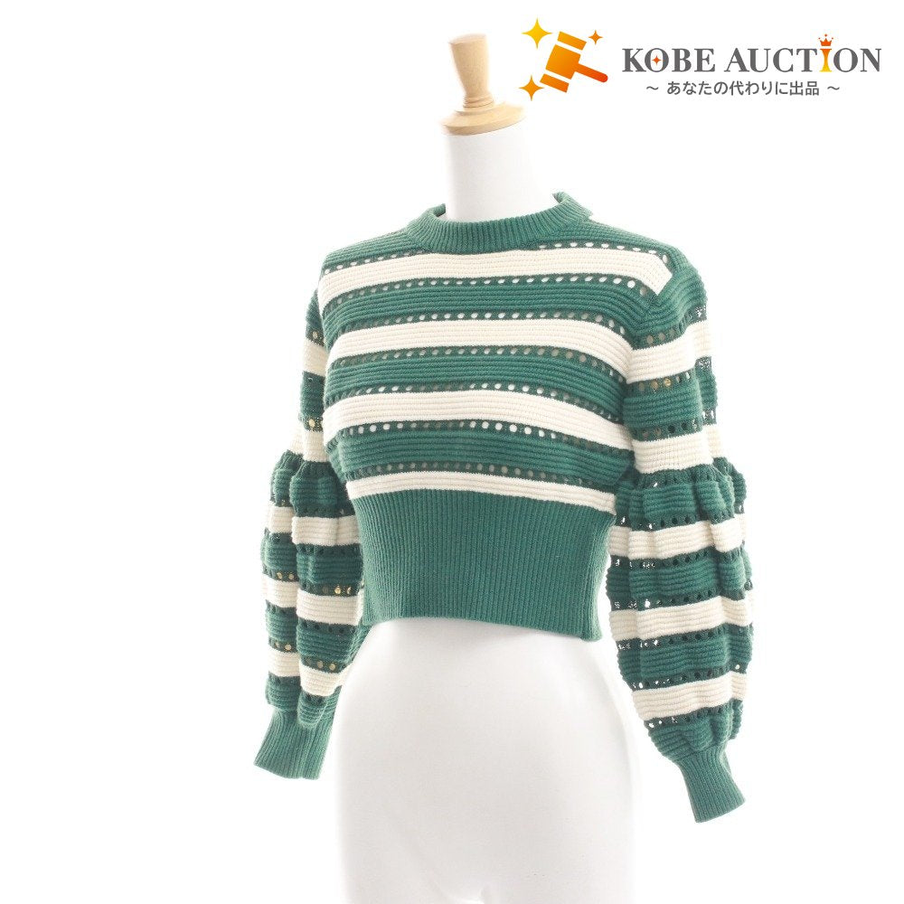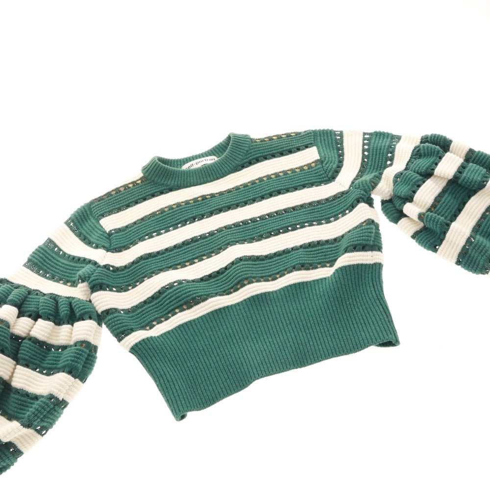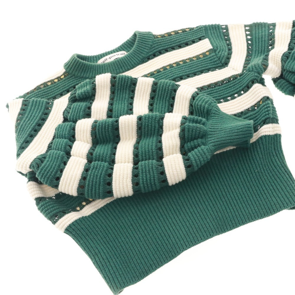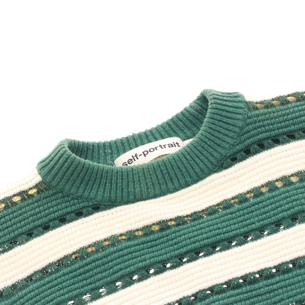 セルフポートレート Self-Portrait ニット セーター 長袖 トップス ボーダー レディース S グリーン系