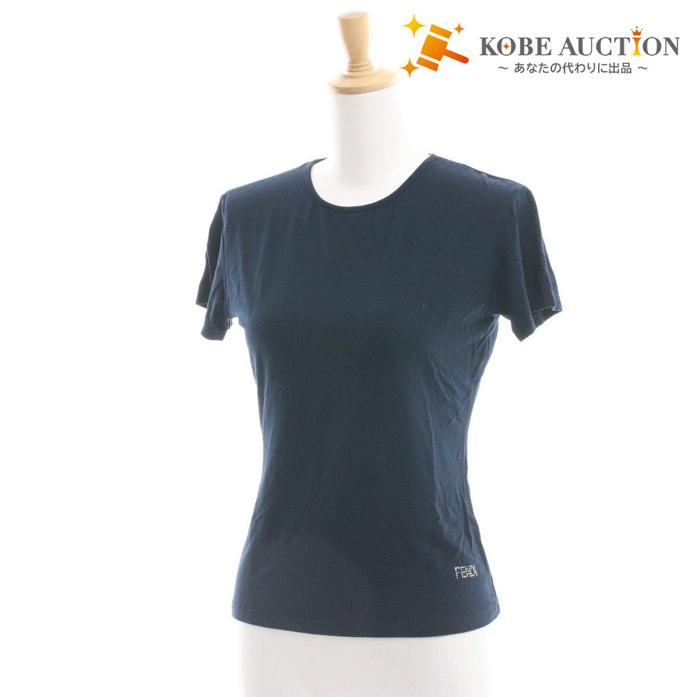 フェンディ カットソー Tシャツ 半袖 トップス ラインストーン ロゴ レディース ネイビー