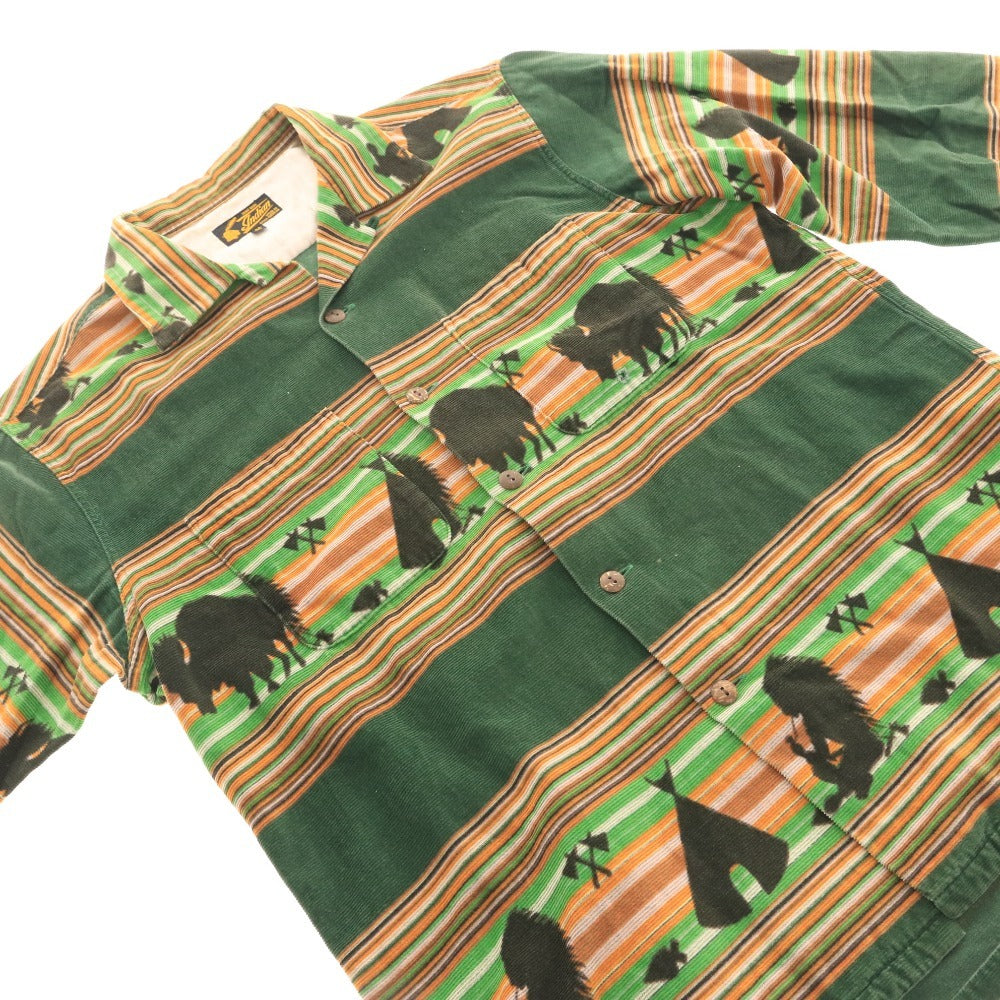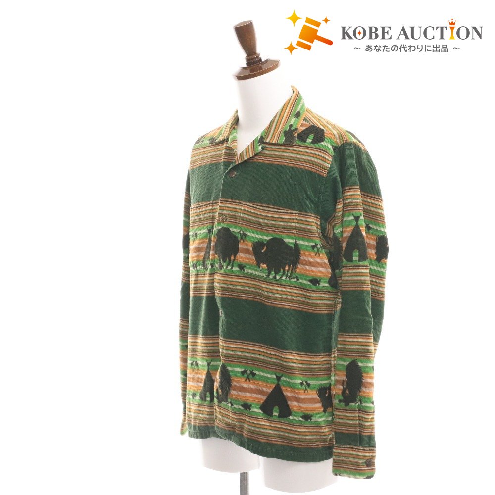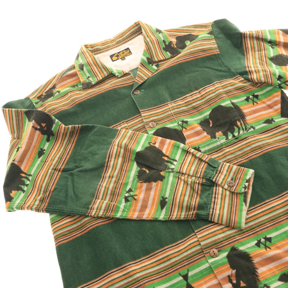 インディアン シャツ 長袖 トップス 総柄 メンズ M グリーン ブラウン