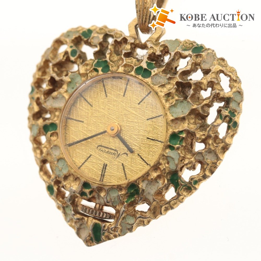 Minerva ミネルヴァ 懐中時計 ネックレス 手巻き 文字盤 ハート 総柄 スイス製 総重量 28g メンズ レディース ゴールド ジャンク