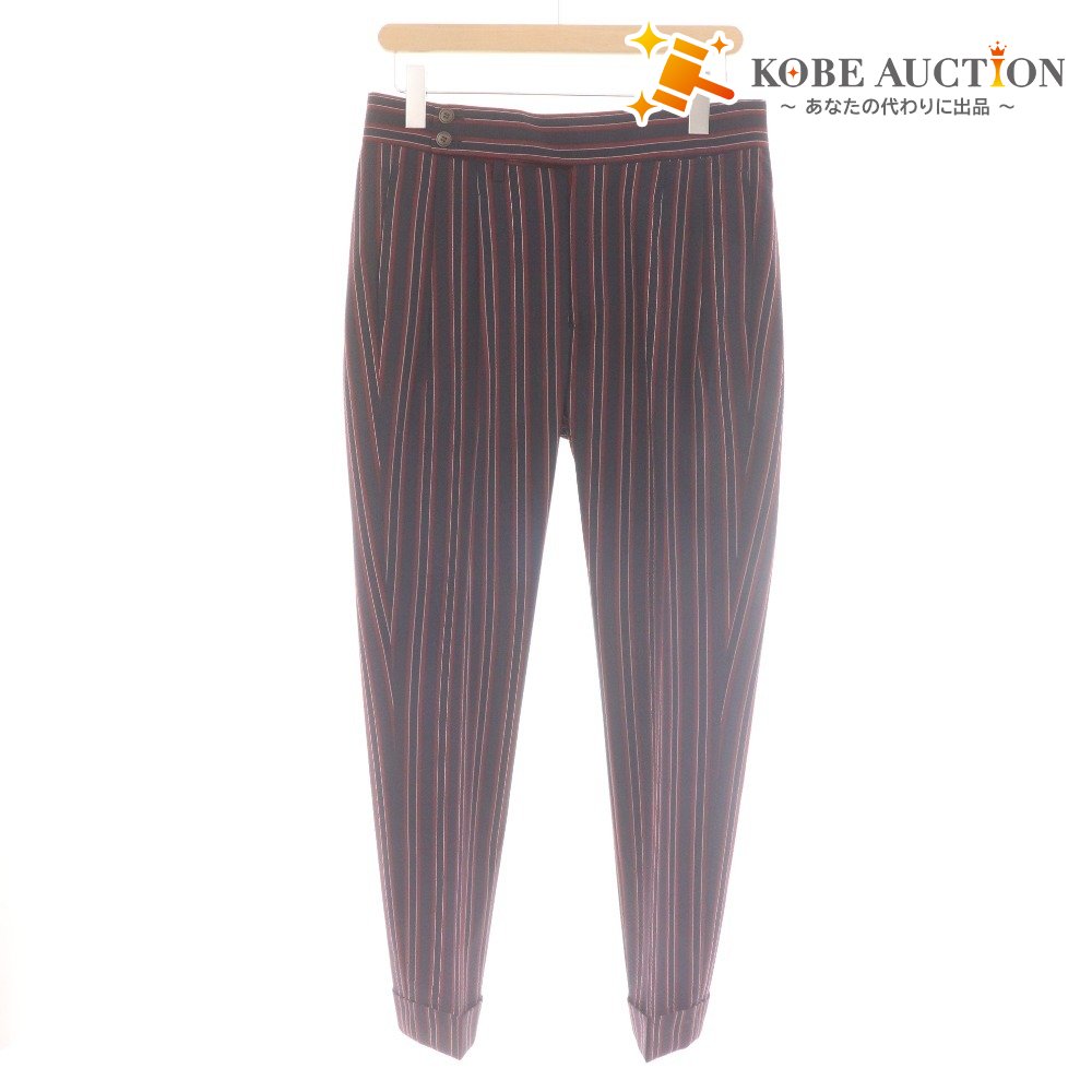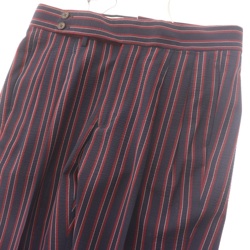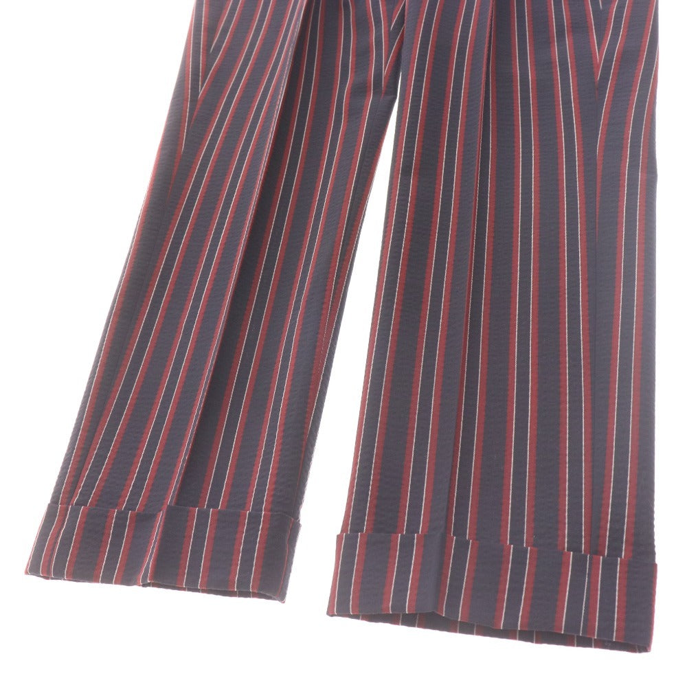 アントレアミ パンツ スラックス ボトムス 2プリーツ ストライプ 裾ダブル シアサッカー メンズ 30 ネイビー レッド タグ付き 未使用
