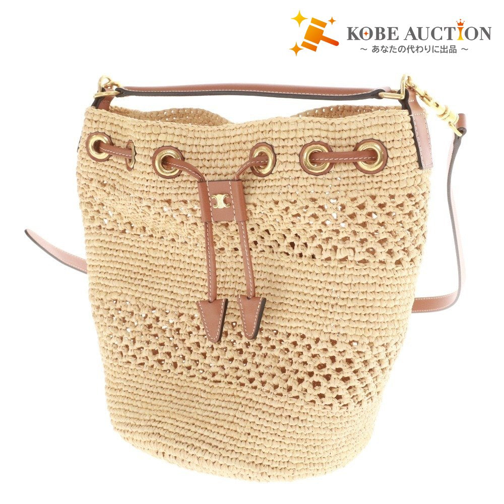 CELINE セリーヌ ティーン クララ バッグ ハンドバッグ 鞄 巾着型 レディース アイボリー系 ライトブラウン系