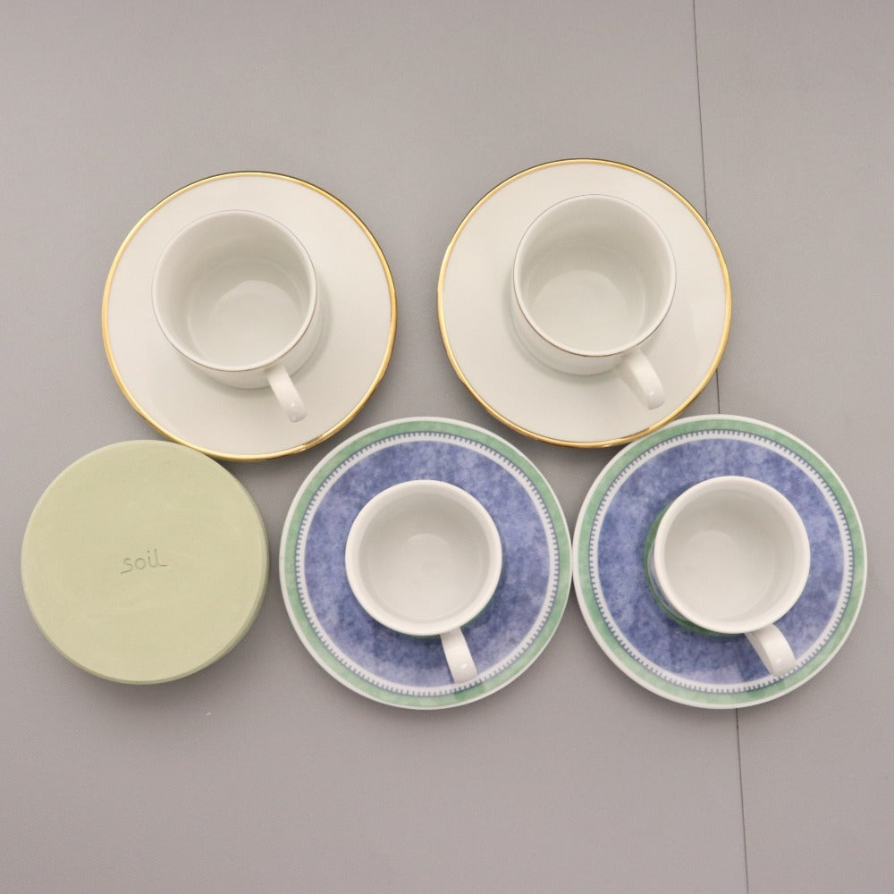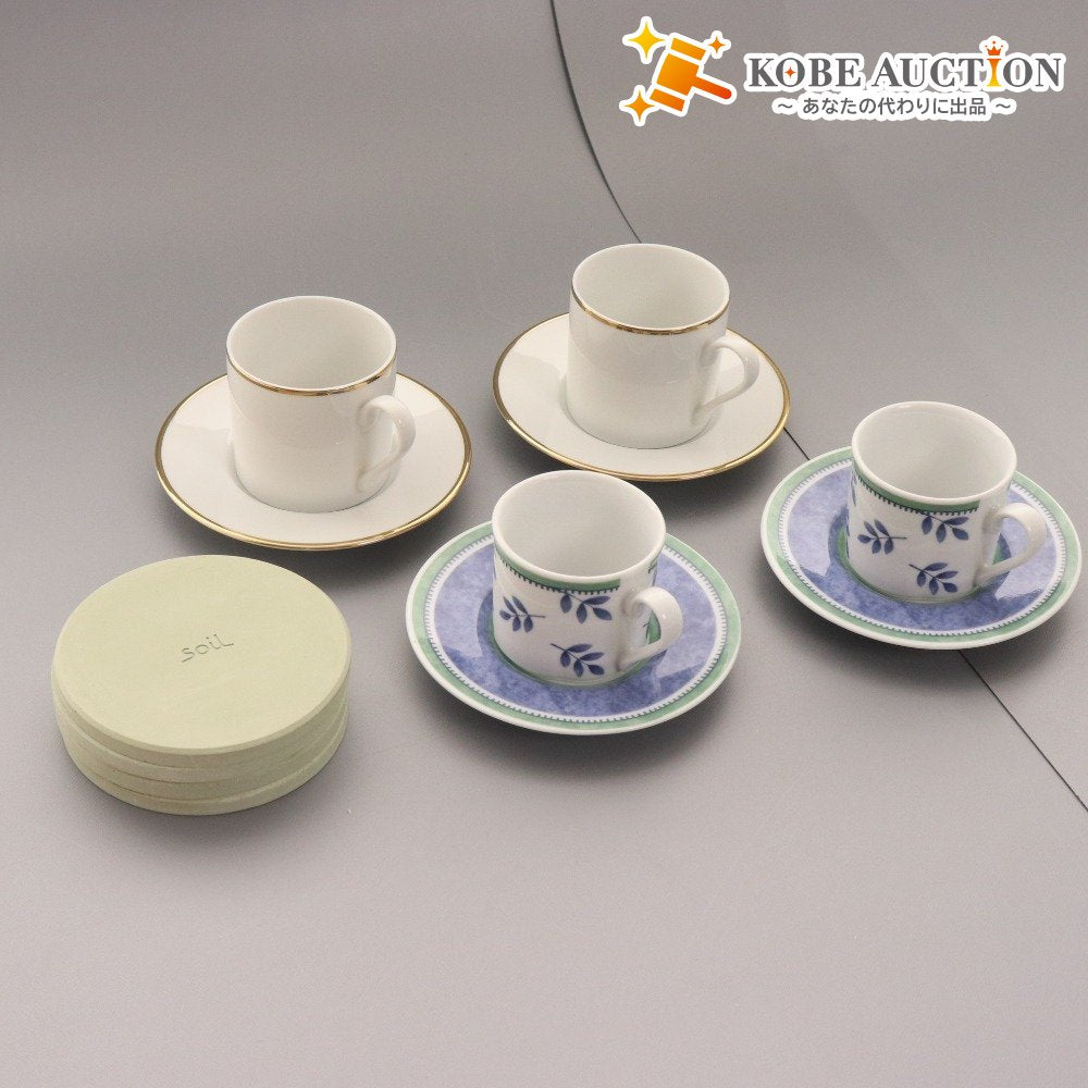 ティファニー ビレロイ&ボッホ ソイル カップ ソーサー コースター 8点セット まとめ売り 食器 グリーン ブルー ホワイト系