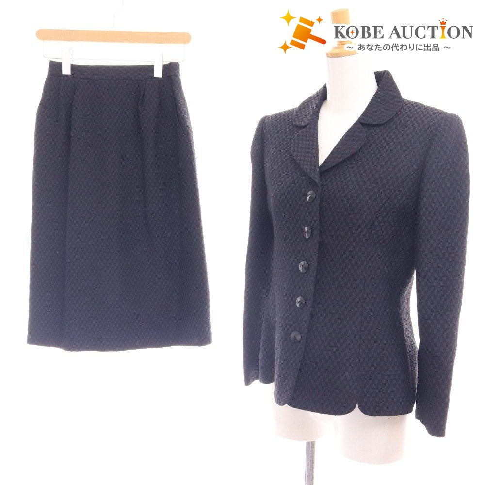 ジュンアシダ スーツ セットアップ ジャケット 膝丈スカート 長袖 PA9306 トップス ボトムス 日本製 丸襟 レディース 9 ブラック