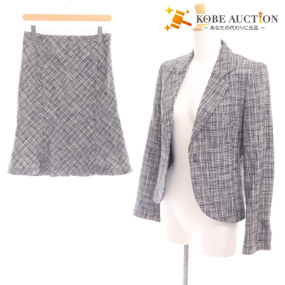 アンタイトル セットアップ スーツ ジャケット ひざ丈スカート 長袖 トップス ボトムス ツイード フレア レディース 3 2 ブラック系