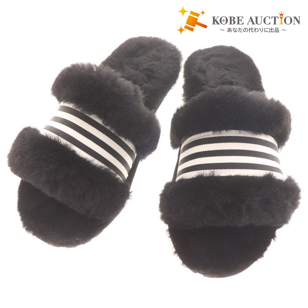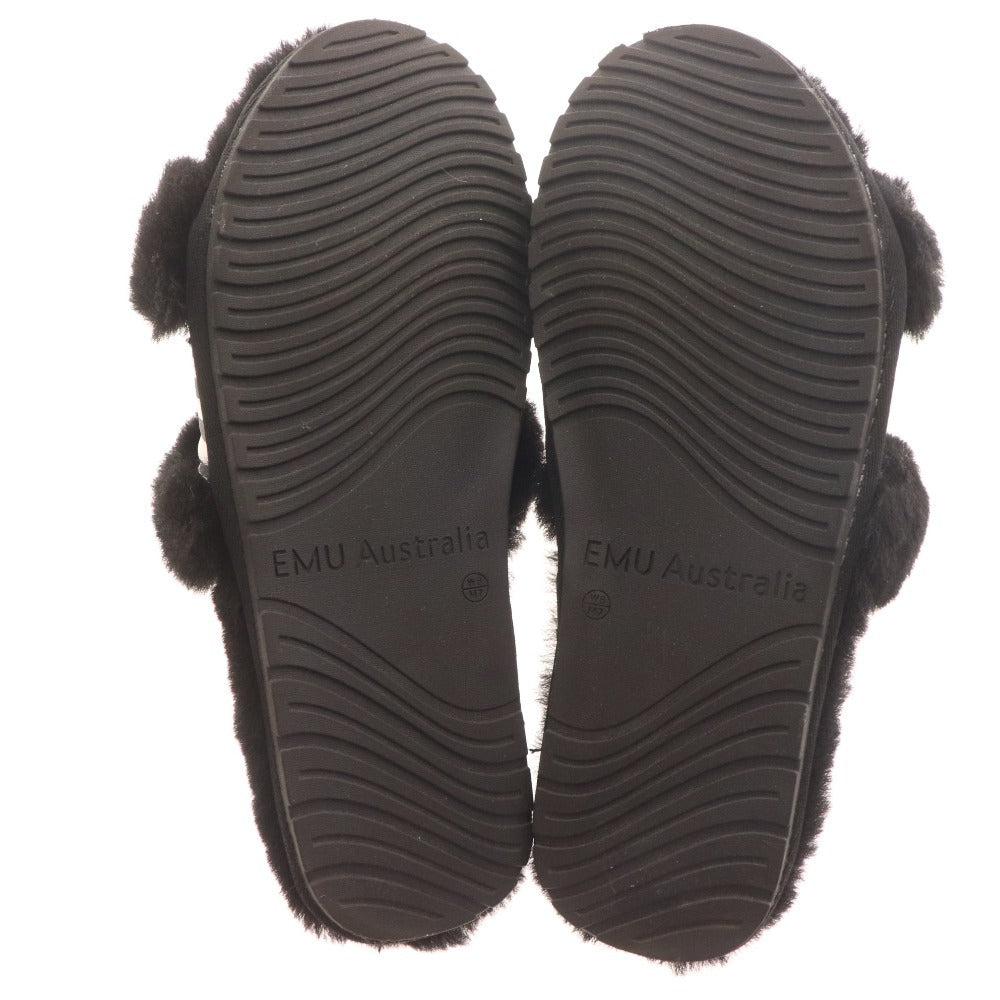 エミュー サンダル スリッパ シューズ 靴 ファー レディース 25.0cm ブラック 箱付き 未使用