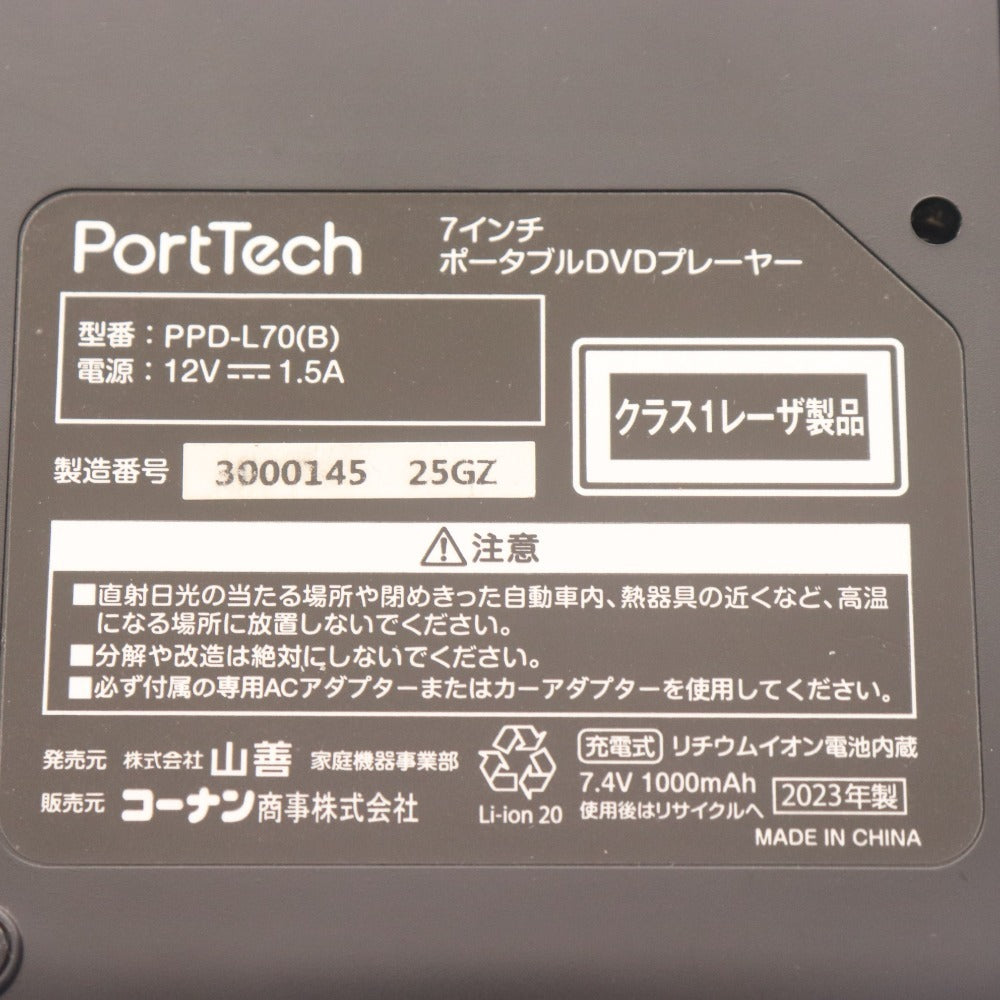 山善 ポータブルDVDプレーヤー PPD-L70 PORTTECH 7インチ 通電確認済み 付属品付き