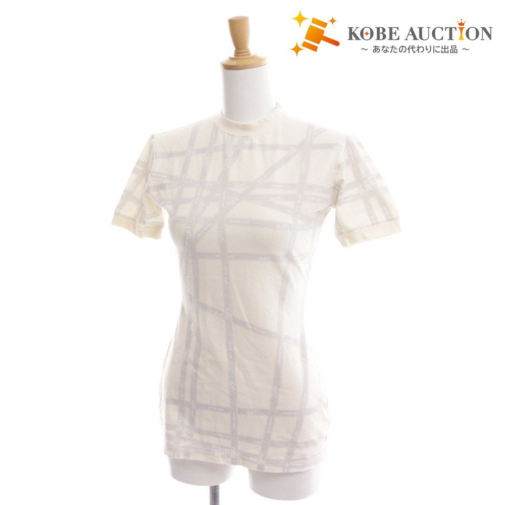 エルメス Tシャツ カットソー 半袖 トップス リボン柄 コットン混 レディース M アイボリー