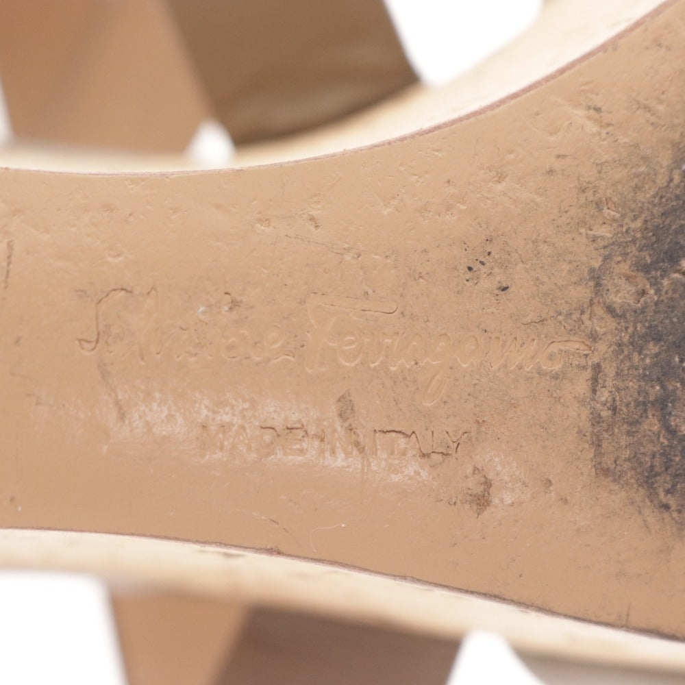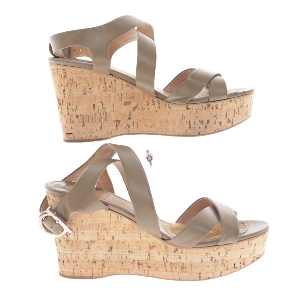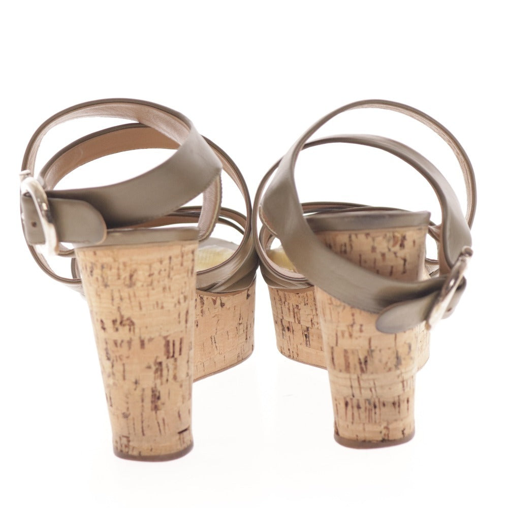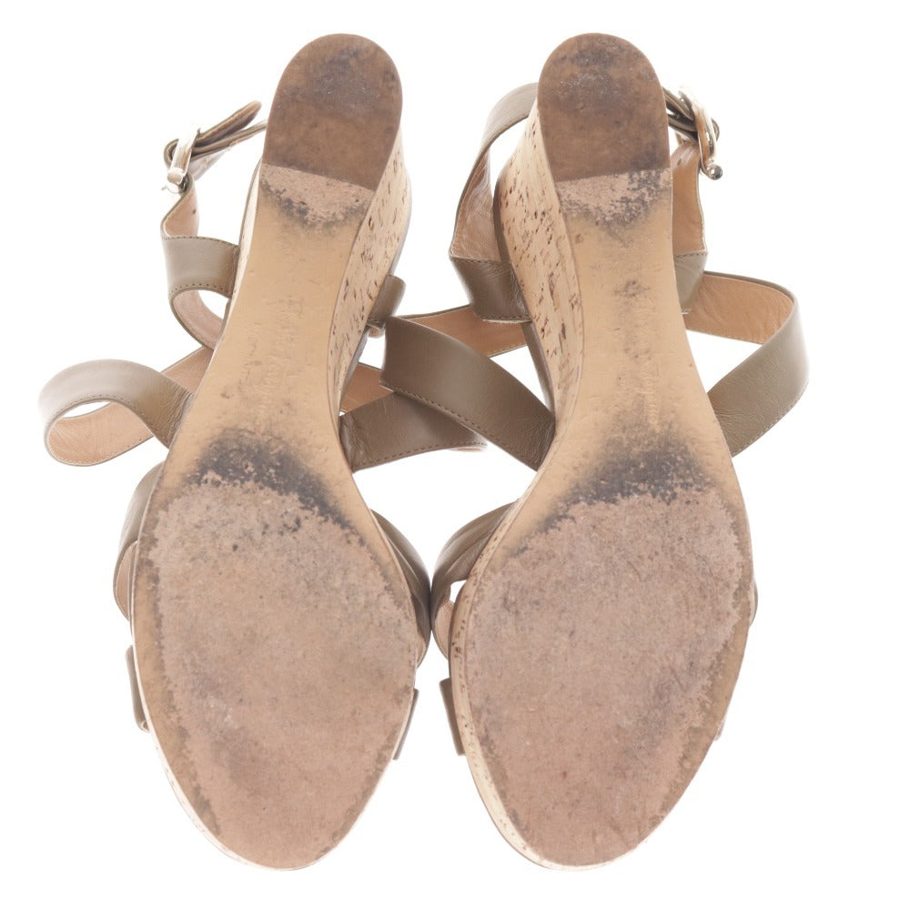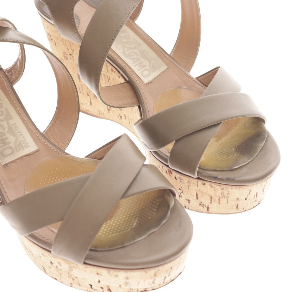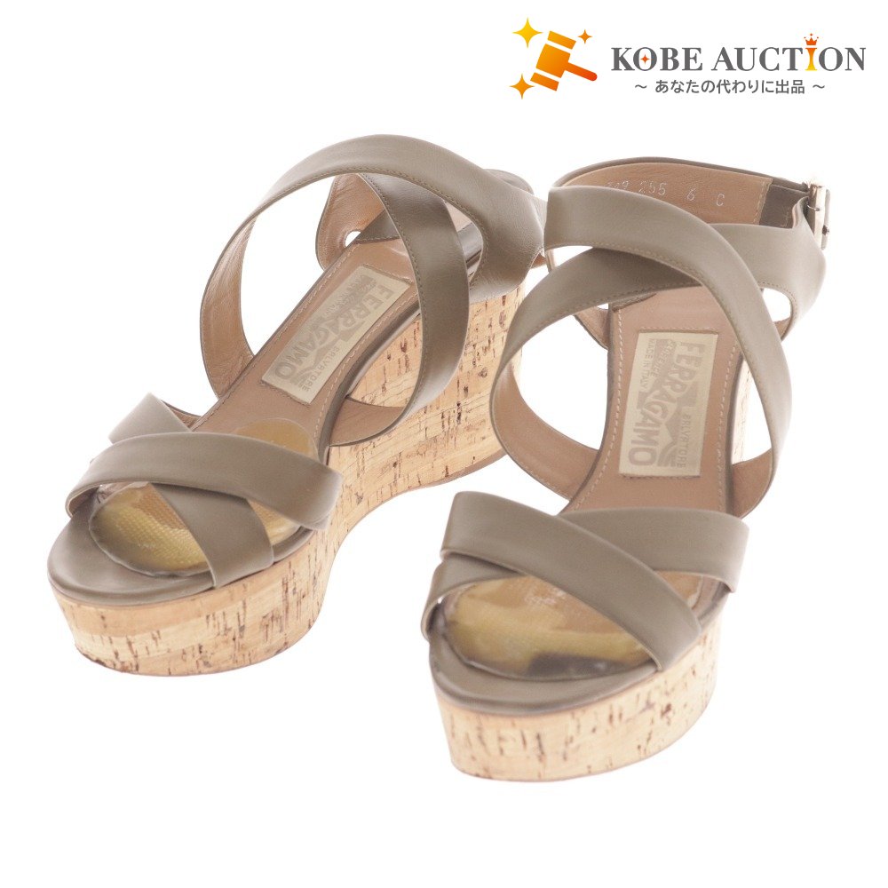 フェラガモ サンダル シューズ 靴 ウェッジソール ストラップ ベルト レディース 6 カーキグレー グリーン 箱付き