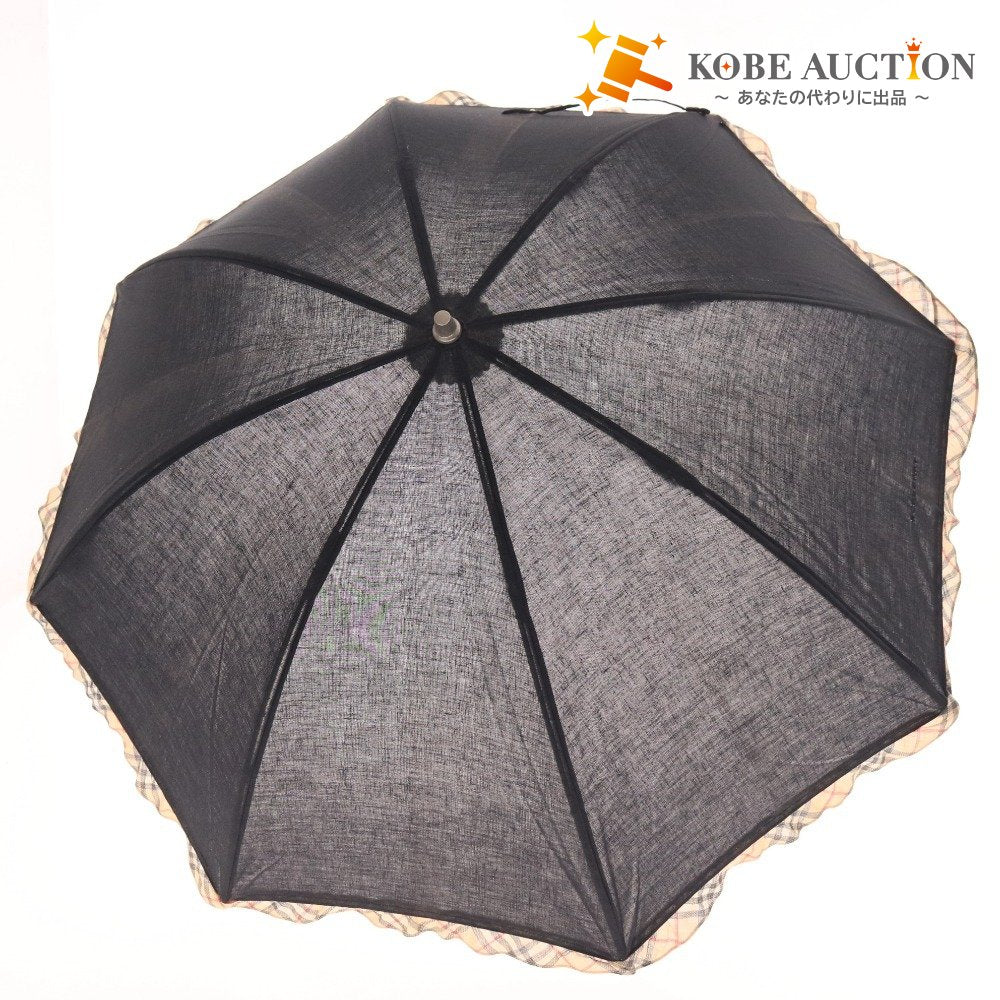 バーバリー 日傘 傘 チェック ロゴ フリル レディース 47cm ブラック