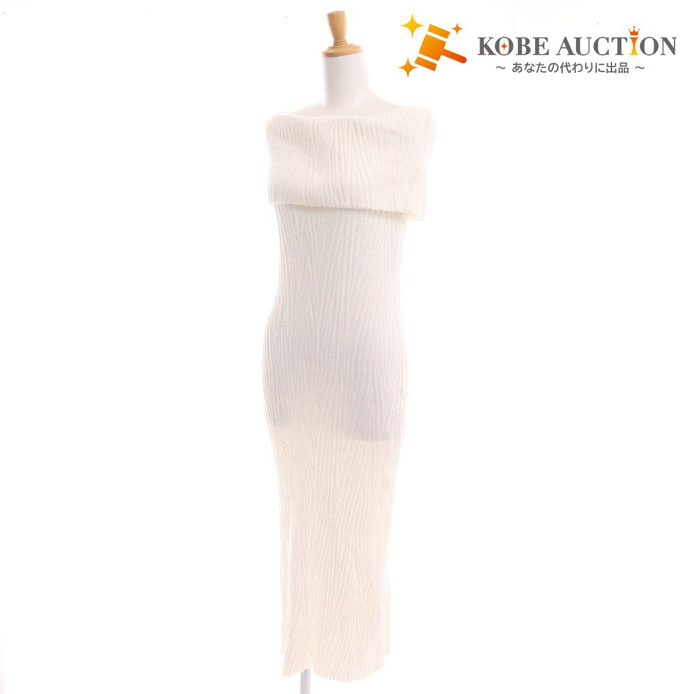 エイミーイストワール ロングワンピース ノースリーブ ニット 肩出し デザインスリーブ レディース F ホワイト タグ付き