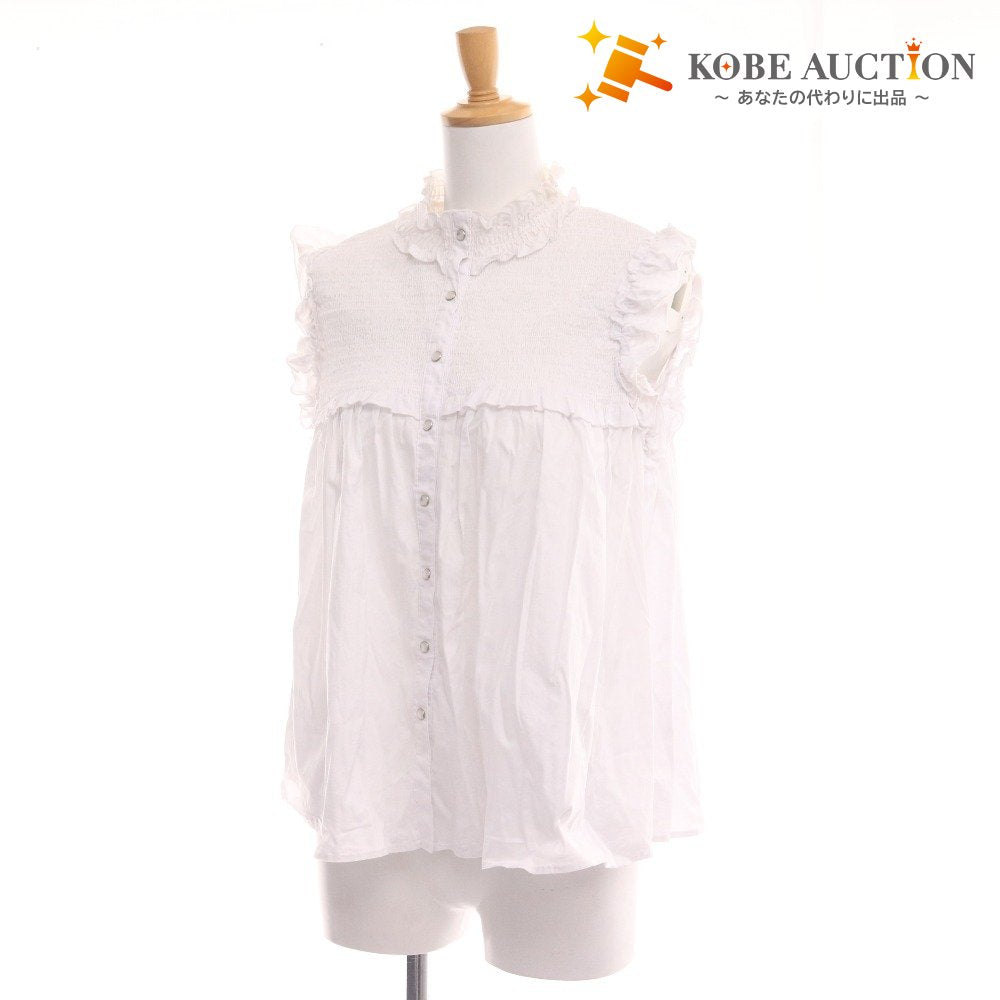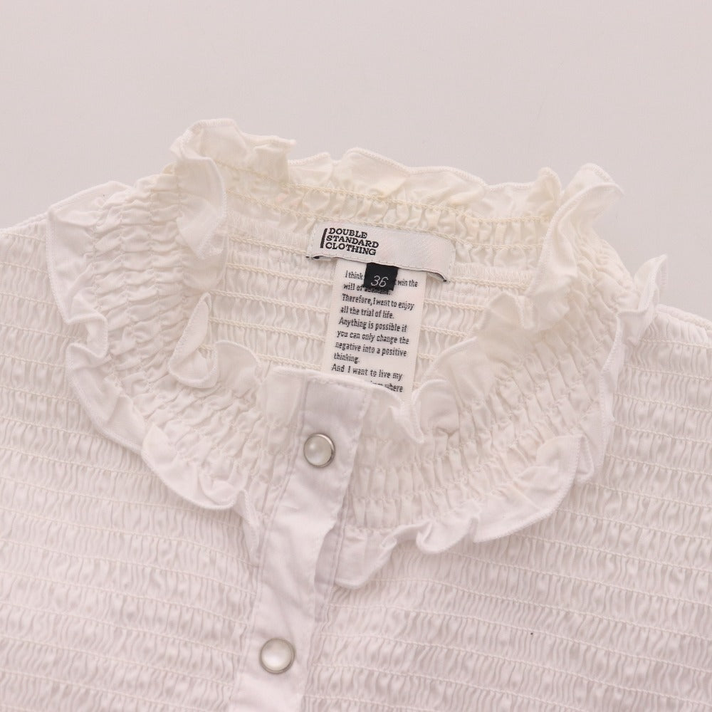 ダブルスタンダードクロージング ブラウス ノースリーブ トップス フリル ノーカラー スナップボタン レディース 36 ホワイト
