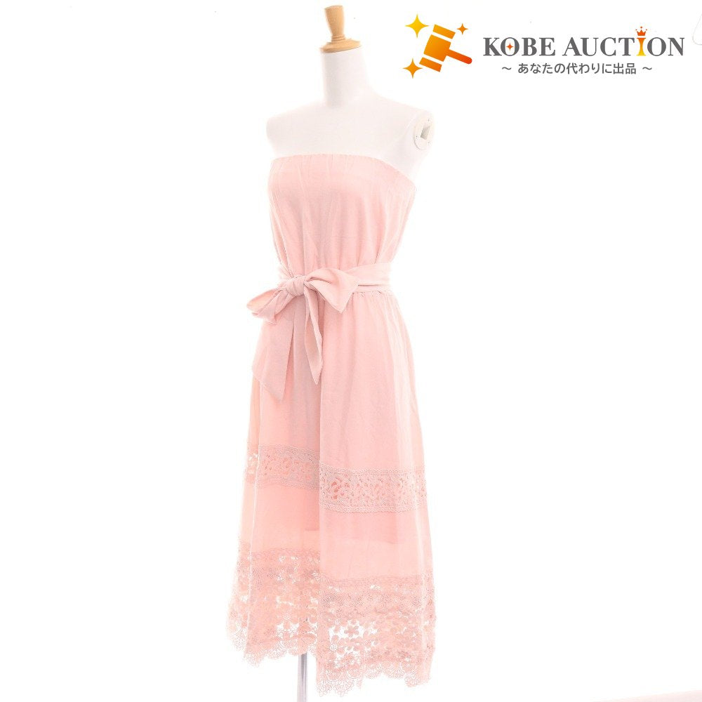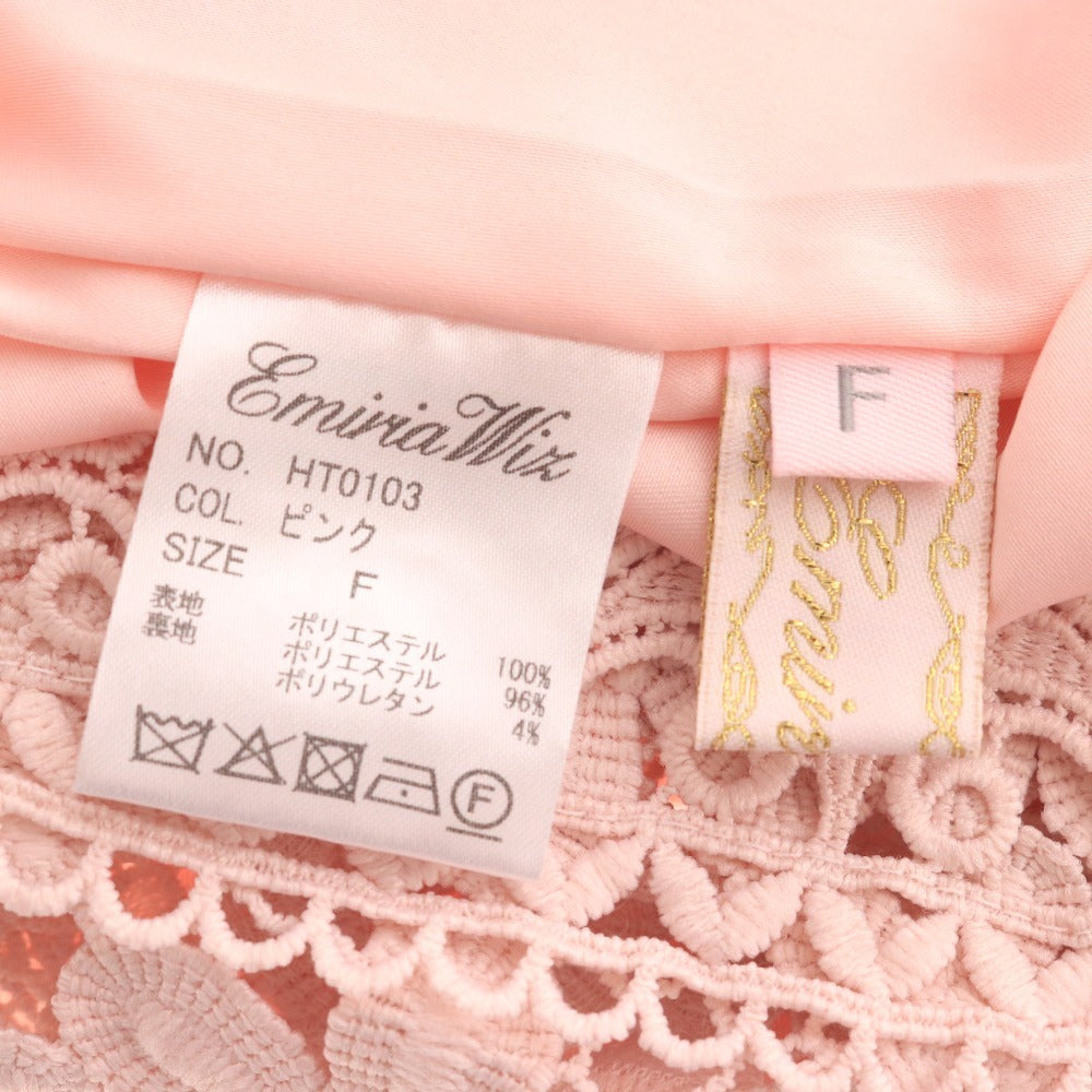 エミリアウィズ ワンピース ノースリーブ トップス ボトムス かぎ針編み リボン レース レディース F ピンクベージュ