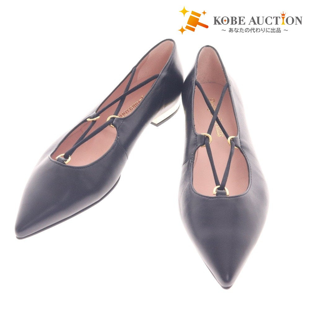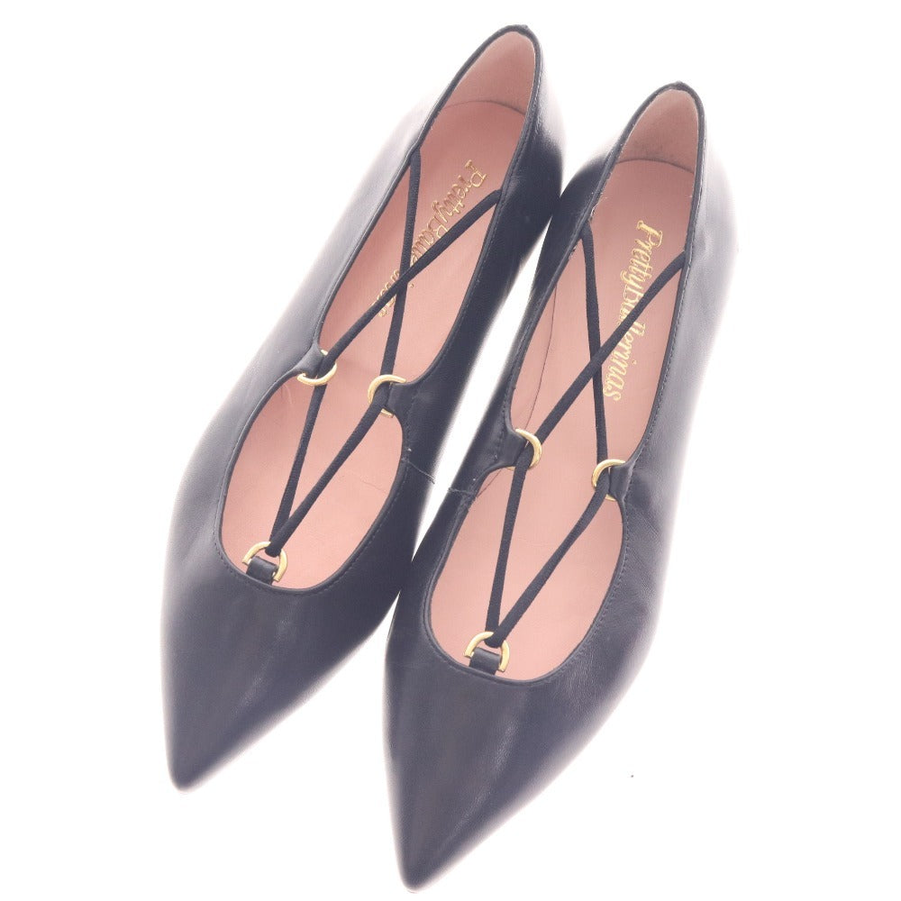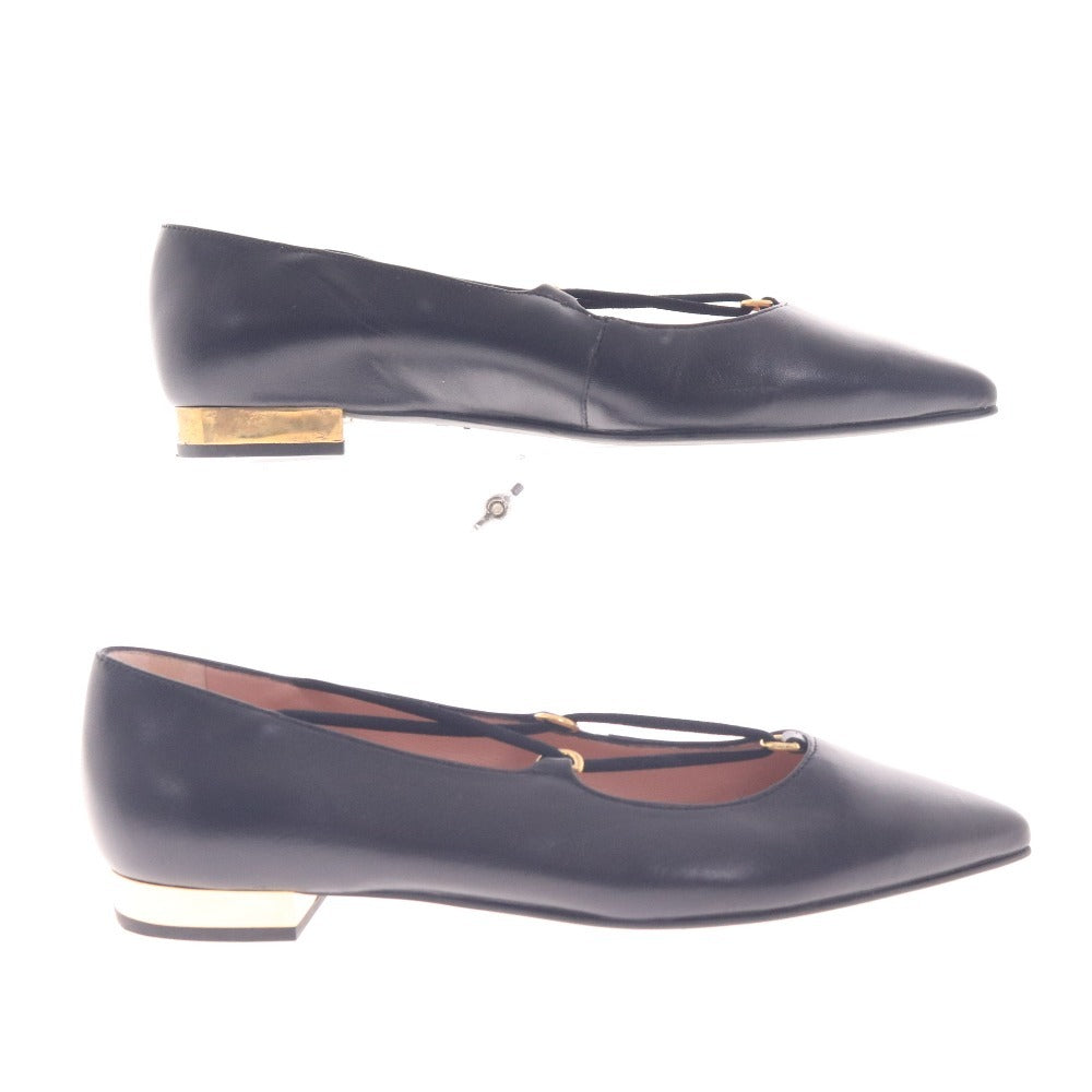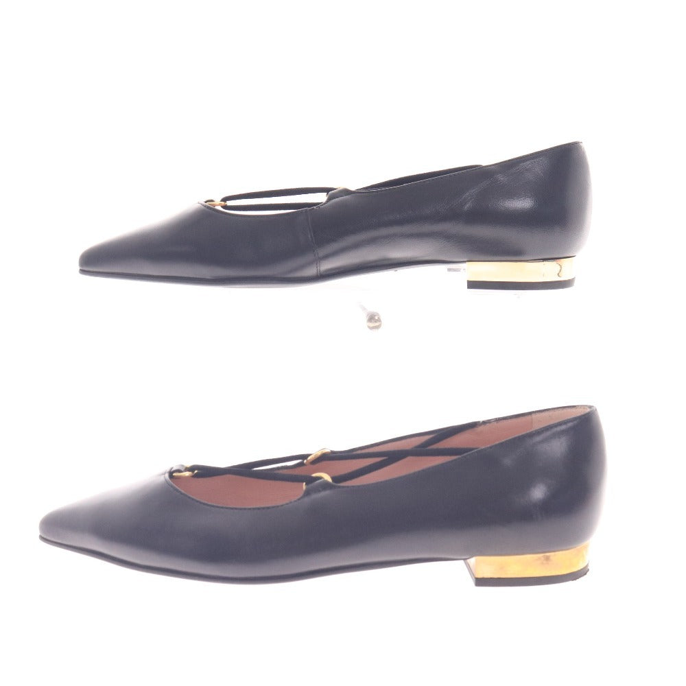 プリティバレリーナ フラットシューズ 靴 ポインテッドトゥ ゴールドソール レディース 36 1/2 ブラック