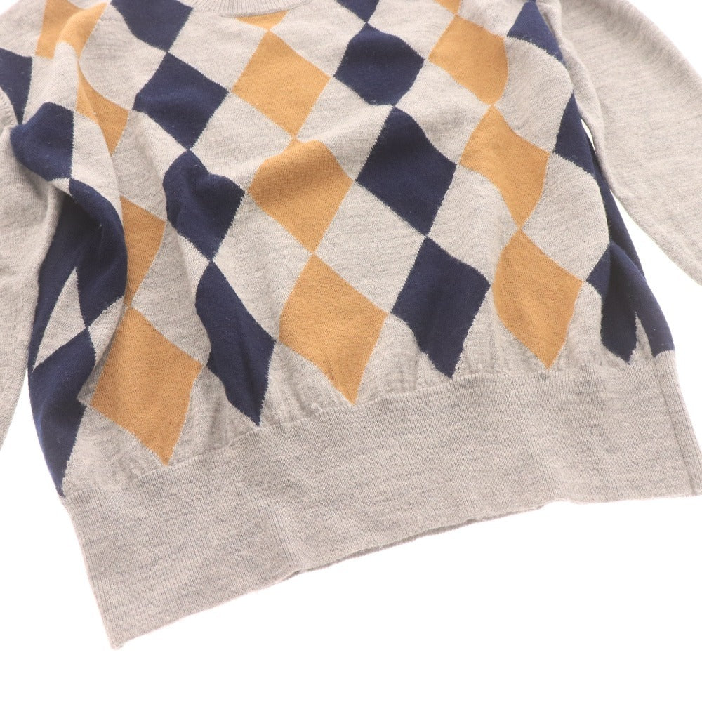 Le Melange ルメランジュ ロングTシャツ ロンT 長袖 トップス ニット ひし形 総柄 メンズ 実寸 L相当 マルチカラー ライトグレー