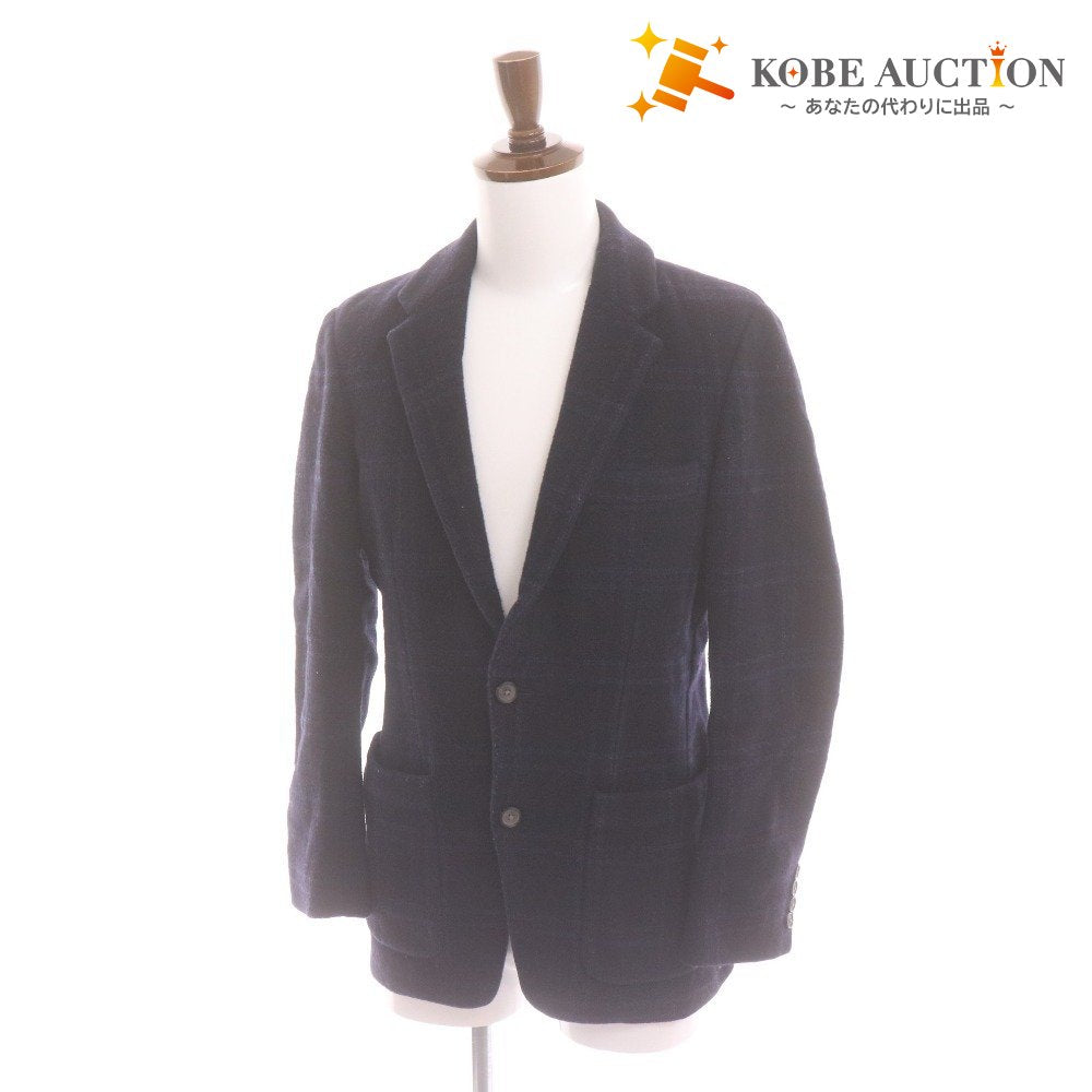 TOMORROWLAND トゥモローランド テーラードジャケット 襟 フロントボタン 胸ポケット チェック柄 メンズ 44 (S相当) ネイビー