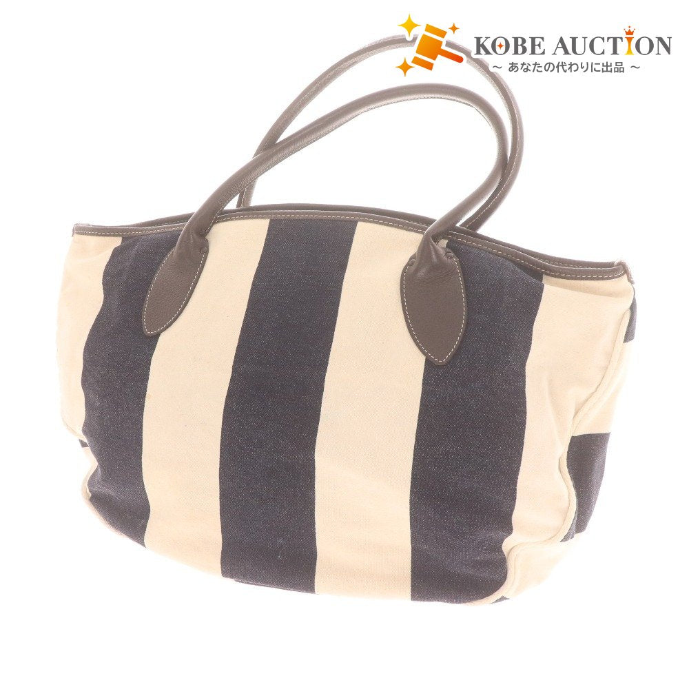 BONFANTI PER VISARUNO ボンファンティ ハンド トートバッグ 鞄 ストライプ柄 イタリア製 メンズ レディース アイボリー ネイビー系