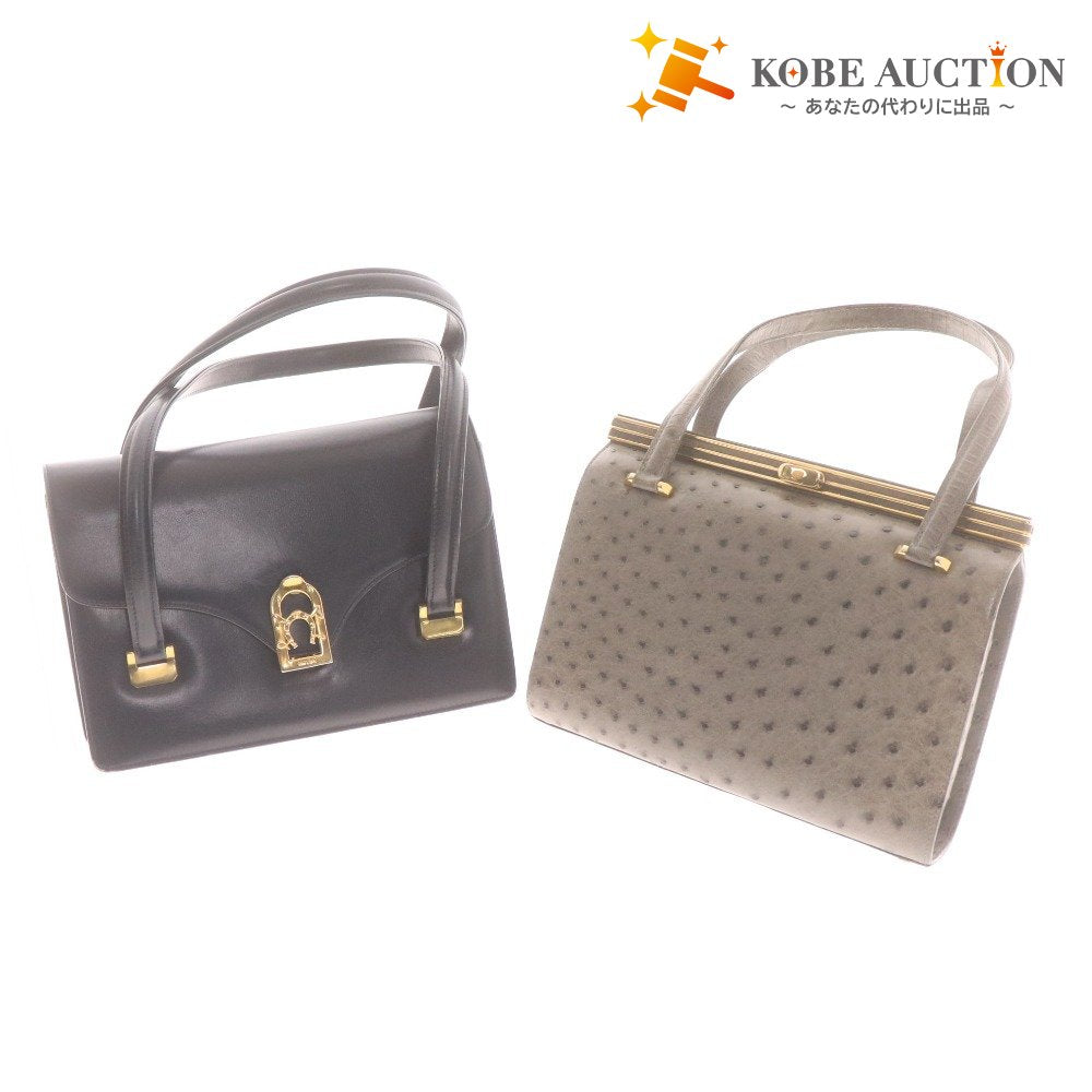 バルトロメイ ロレンツィ トート ハンドバッグ 2点セット まとめ売り 鞄 オーストリッチ 総柄 レディース ネイビー系 二つ折り財布付き
