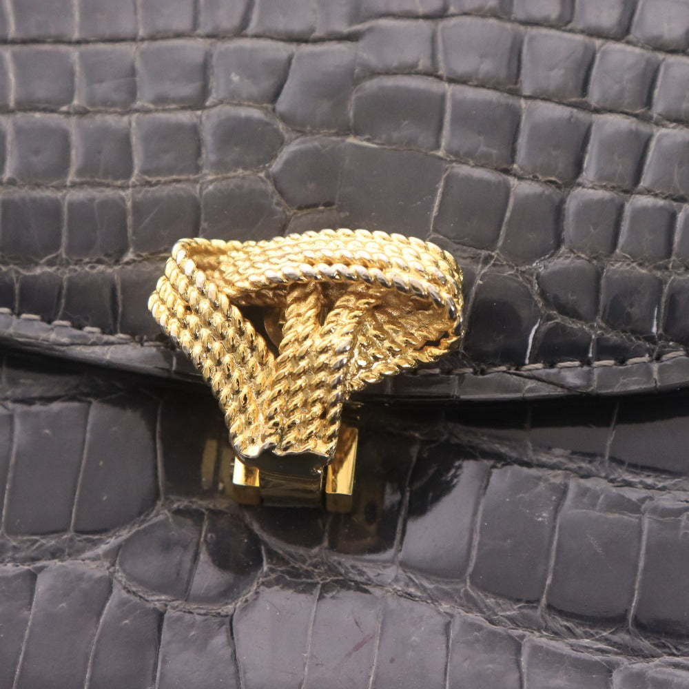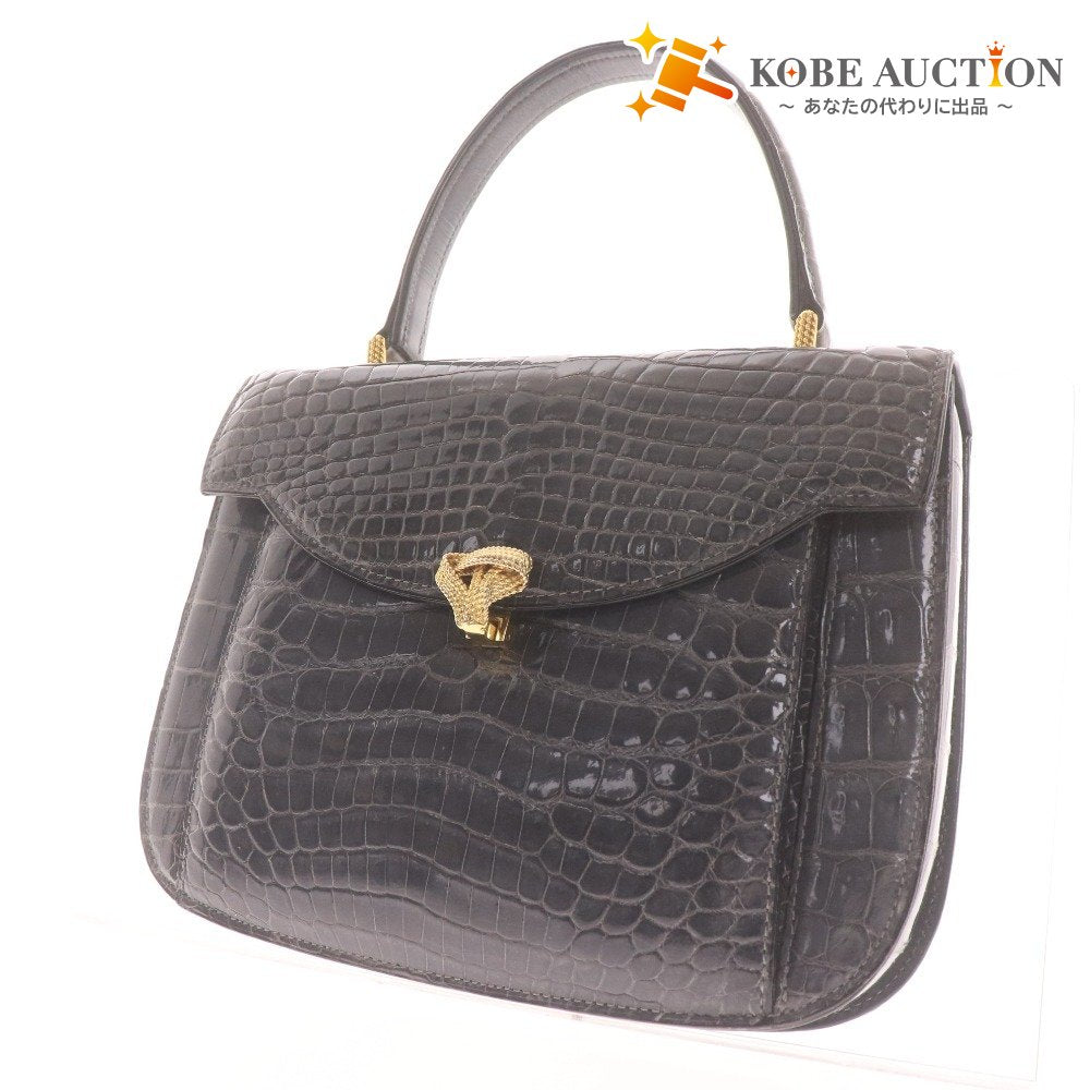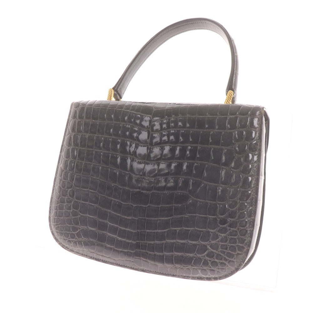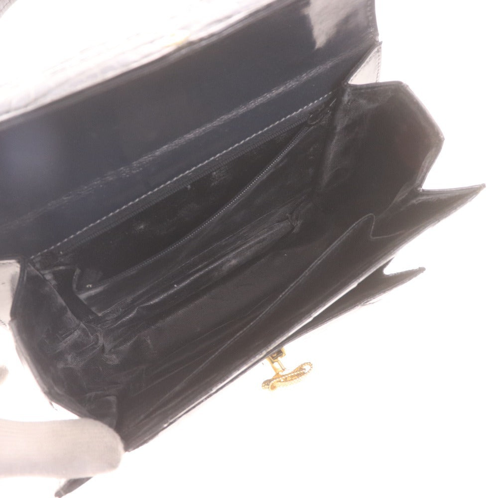 トートバッグ ハンドバッグ 鞄 ワニ革 クロコダイル 金具 マーク レディース ネイビー