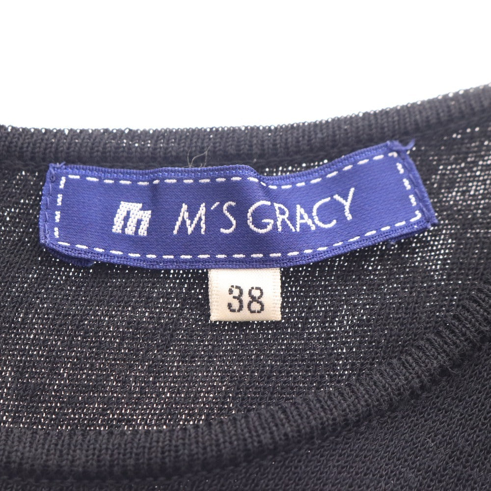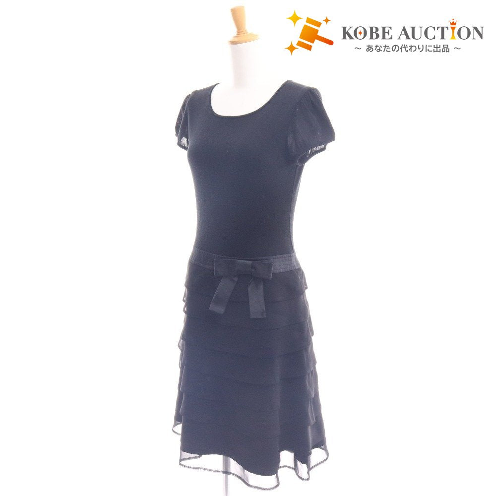 エムズグレイシー ワンピース 半袖 トップス ボトムス フリル リボン ウエスト切り替え ひざ丈 レディース 38 ブラック