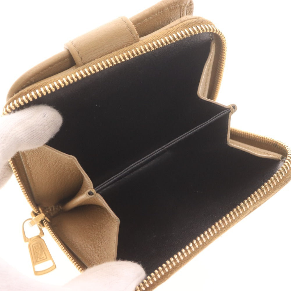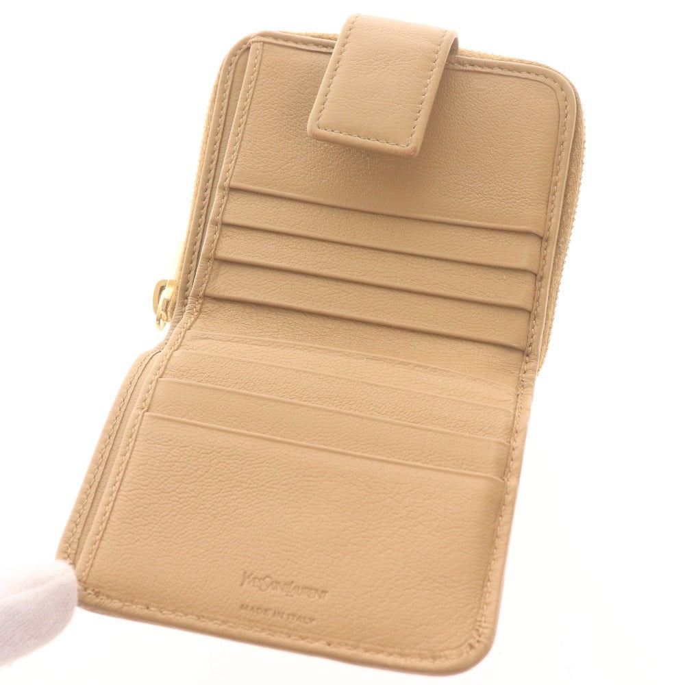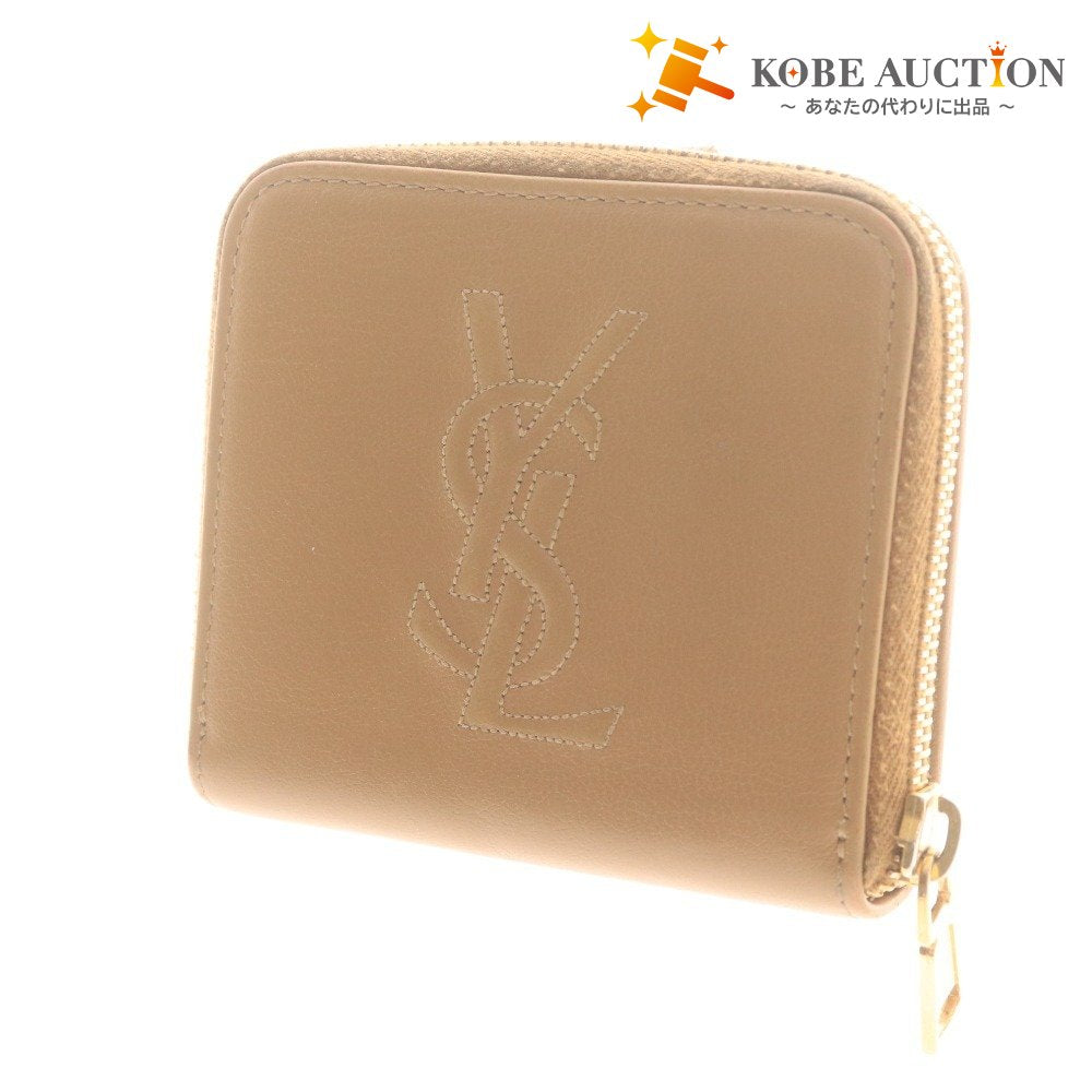 イヴサンローラン 二つ折り財布 568985 CP20O 2718 ラウンドファスナー コンパクトジップ レディース ベージュ 付属品付き