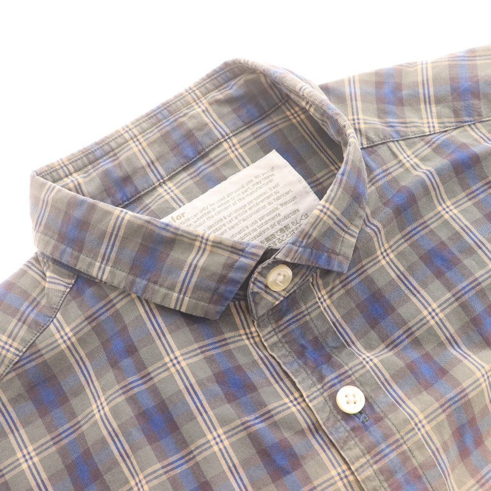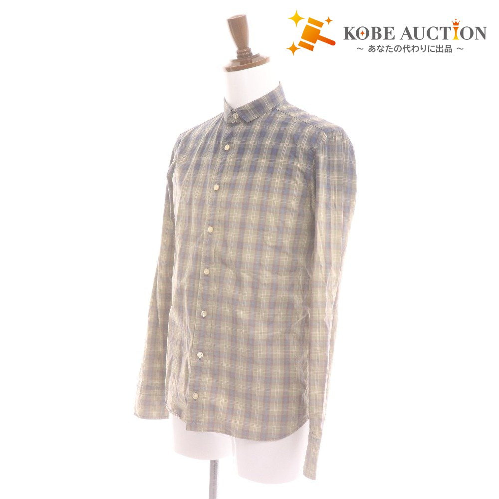 カラー シャツ 長袖 トップス チェック メンズ 2 ブルー グリーン系