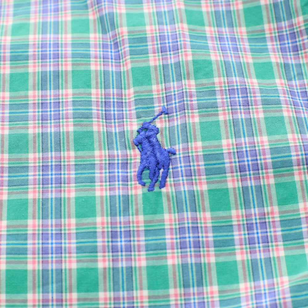 ラルフローレン シャツ 長袖 トップス チェック ロゴ刺繍 ボタンダウン スリムフィット メンズ M/M グリーン系