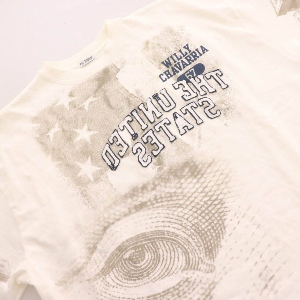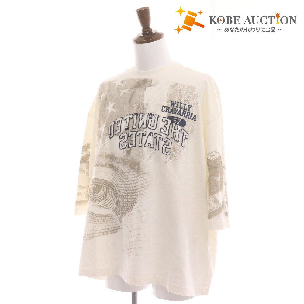 ウィリーチャバリア Tシャツ ロンT BUFFALO T BACKWARDS USA 67 長袖 トップス 総柄 ロゴ プリント メンズ L ホワイト 白 未使用
