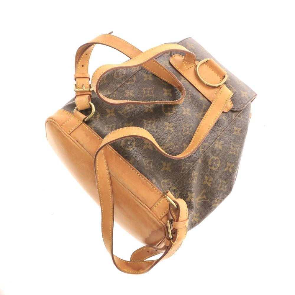 ルイヴィトン モンスリMM モノグラム リュックサック デイパック 鞄 ファスナーポケット ゴールド金具 レディース ダークブラウン