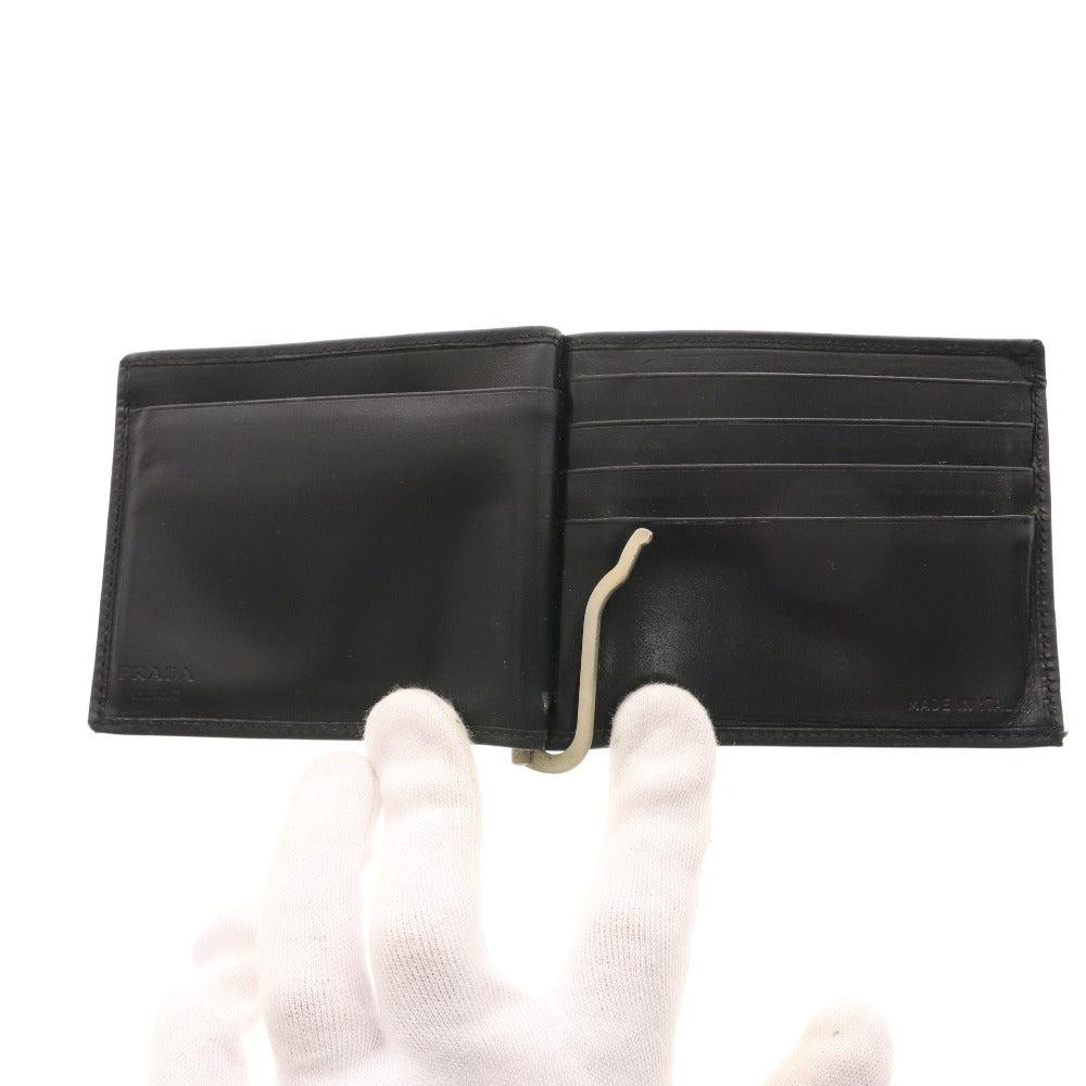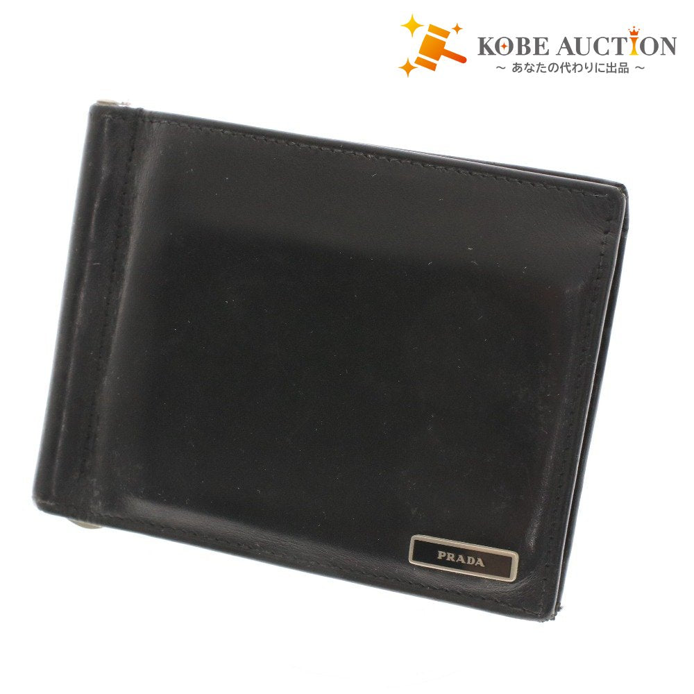 プラダ 二つ折り 財布 札入れ カードケース マネークリップロゴ イタリア製 メンズ ブラック