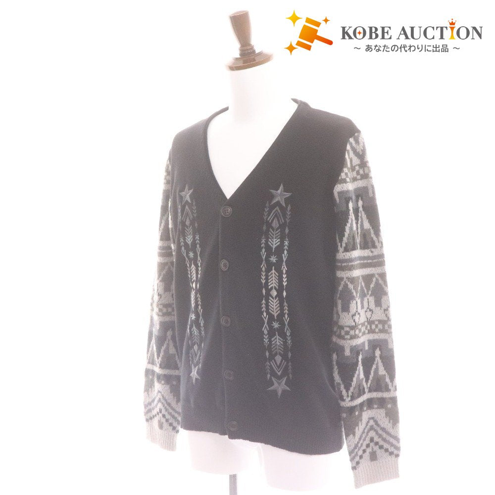 glamb グラム カーディガン 長袖 トップス アウター ニット Vネック ノルディック柄 メンズ 2 黒 グレー系