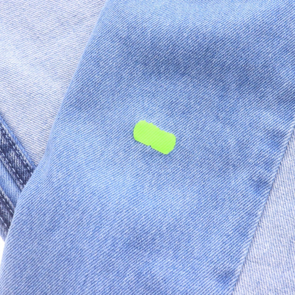後ろの左下に緑色のシールが貼っているのが見受けられます。詳細は画像を参照ください。