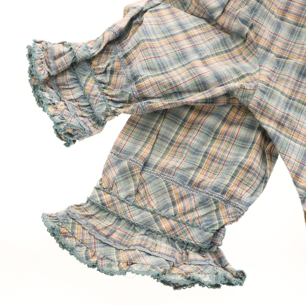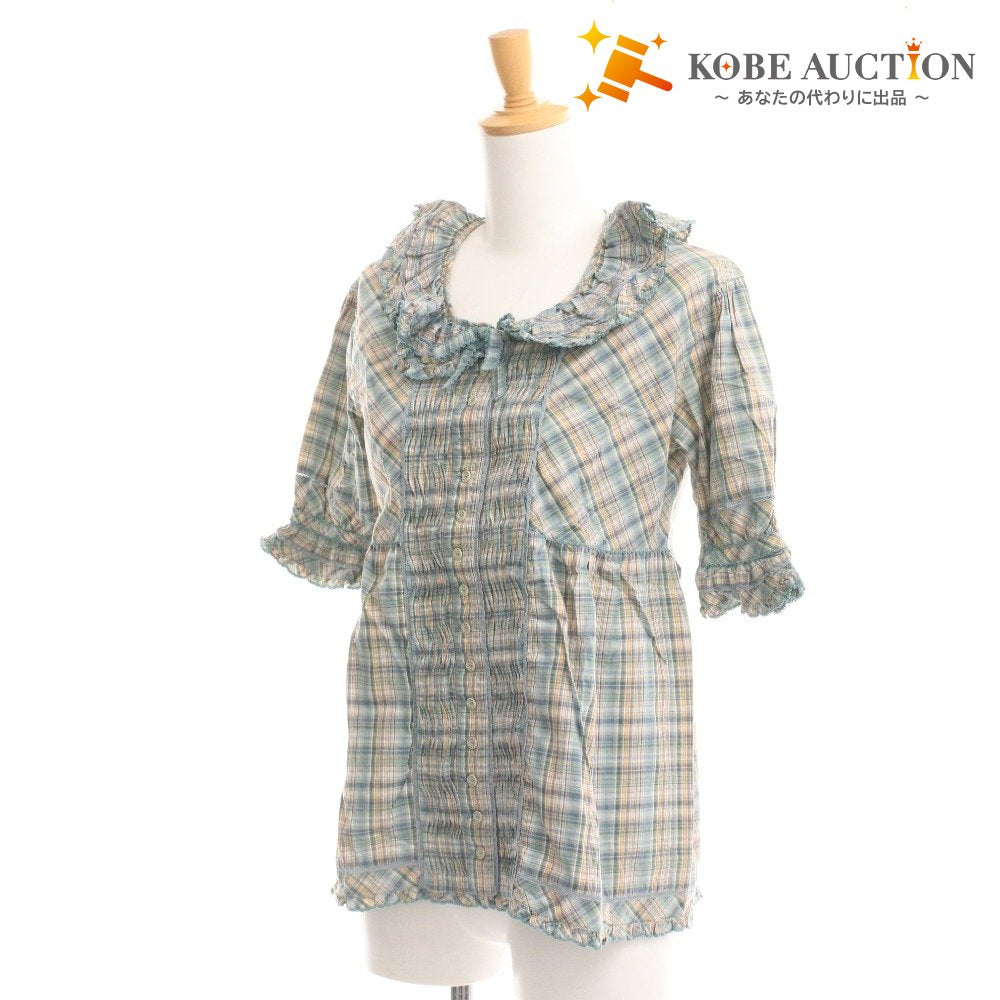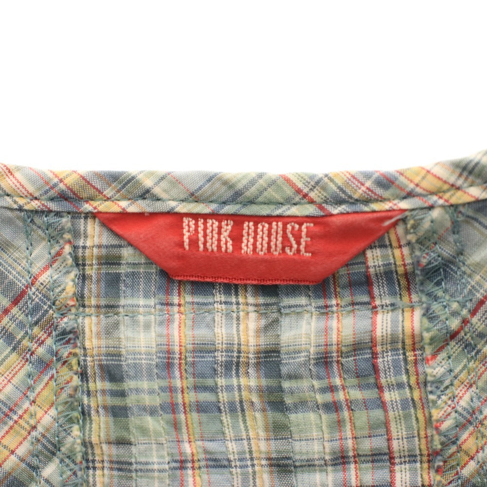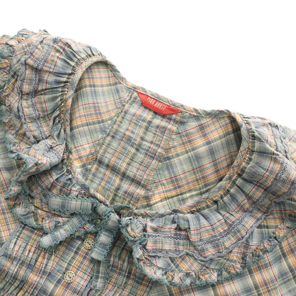 ピンクハウス ブラウス 半袖 トップス チェック フリル リボン レディース グリーン系
