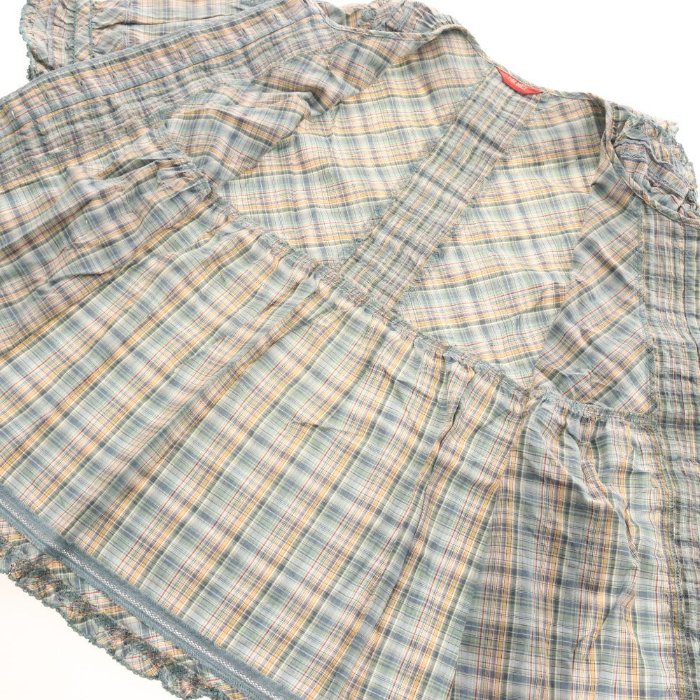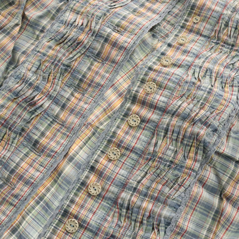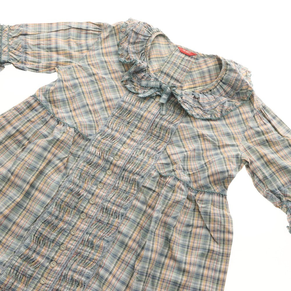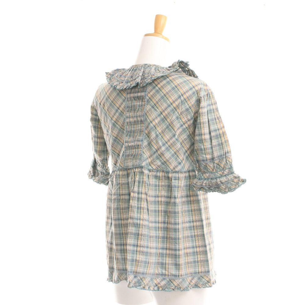 ピンクハウス ブラウス 半袖 トップス チェック フリル リボン レディース グリーン系