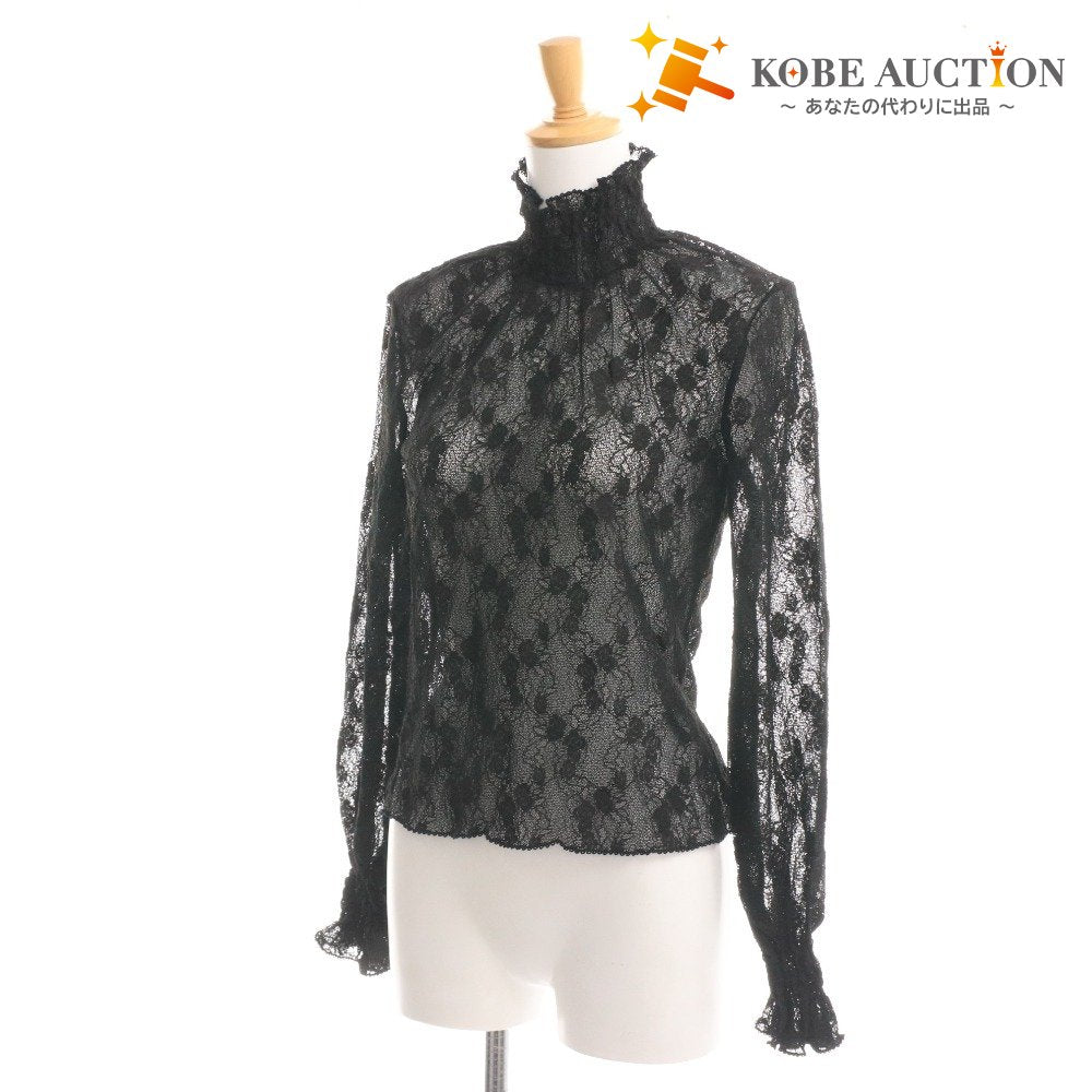 インゲボルグ ブラウス 長袖 トップス レース ハイネック フリル レディース S ブラック