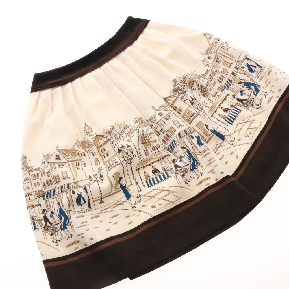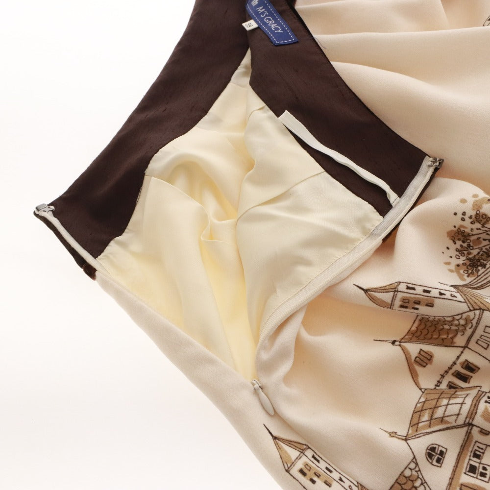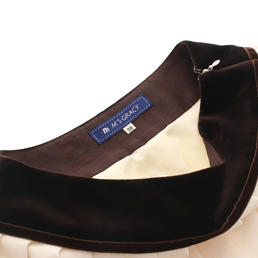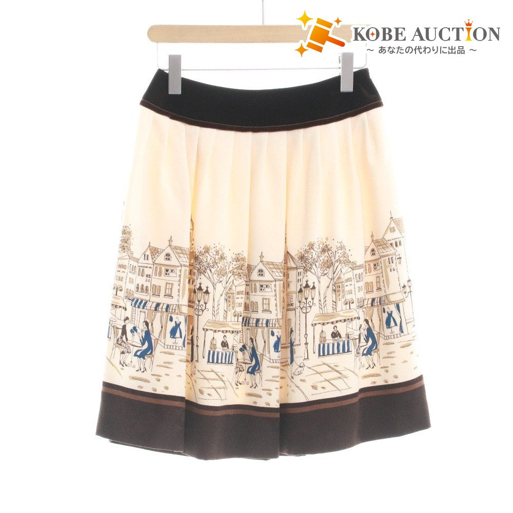 エムズグレイシー スカート ひざ丈 ボトムス 日本製 ベロア 柄 レディース 38(M相当)オフホワイト ブラウン系