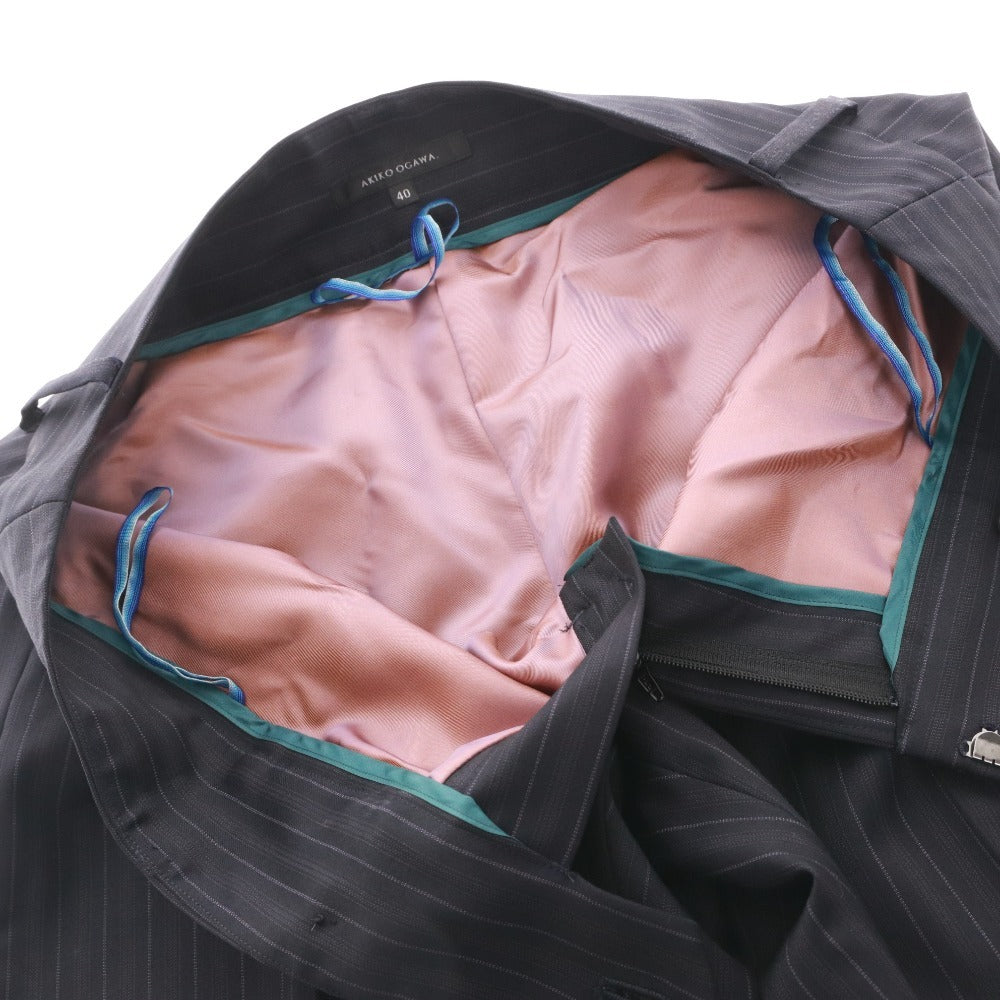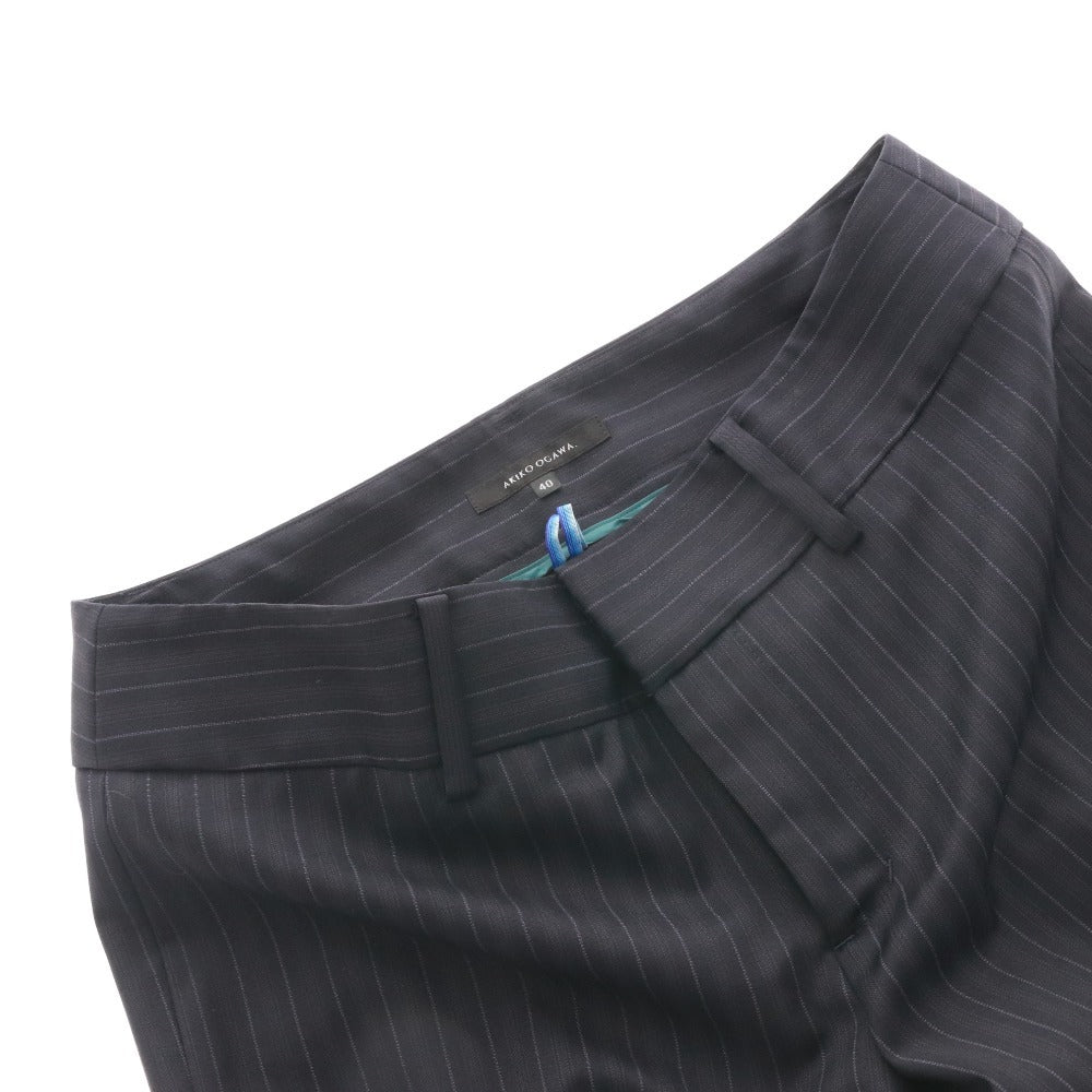 アキコオガワ AKIKO OGAWA パンツ 133-14015 ボトムス センタープレス ストライプ レディース 40(L相当)ネイビー タグ付き