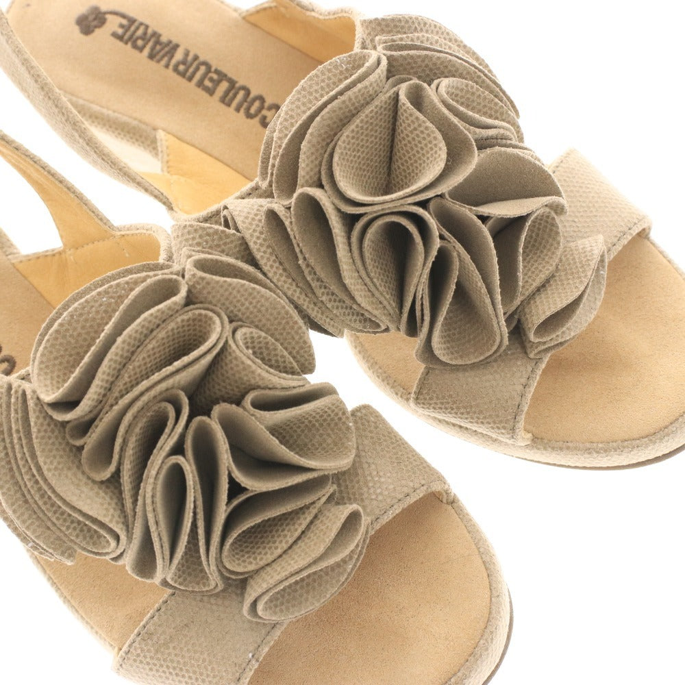 COULEUR VARIE クロールバリエ サンダル ミュール 744206 リボン飾り レディース 22cm ベージュ系