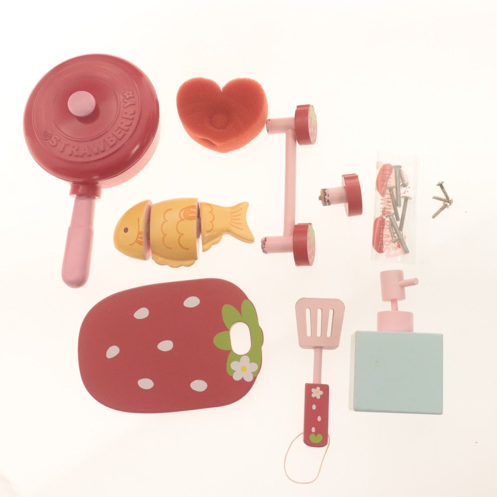 マザーガーデン ままごとキッチンセット おもちゃ 野いちご 木製 鍋 包丁 まな板 等 ピンク レッド