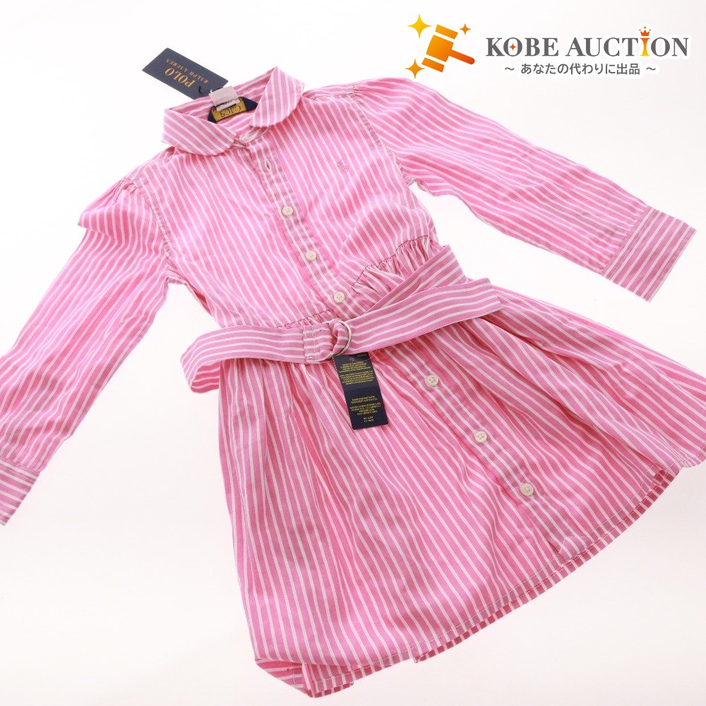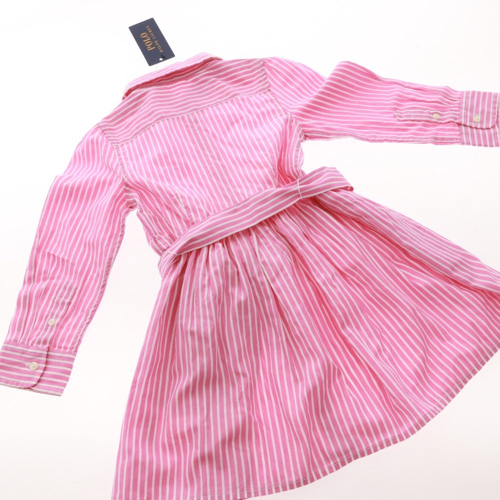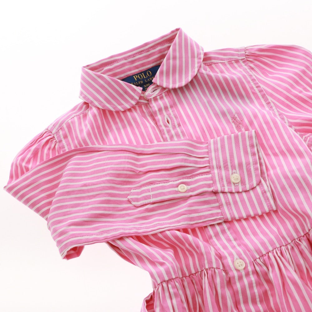 ラルフローレン POLO シャツワンピース 長袖 トップス ボトムス ストライプ キッズ 3/3T(90-100相当) ピンク タグ付き 未使用