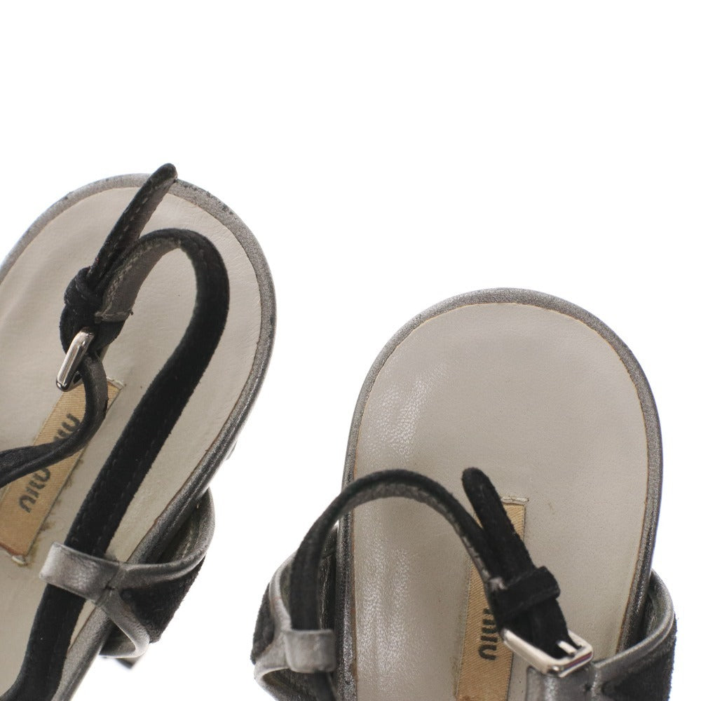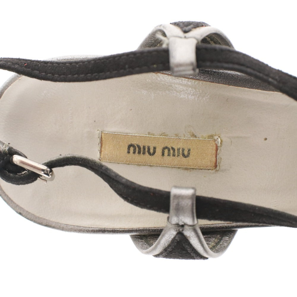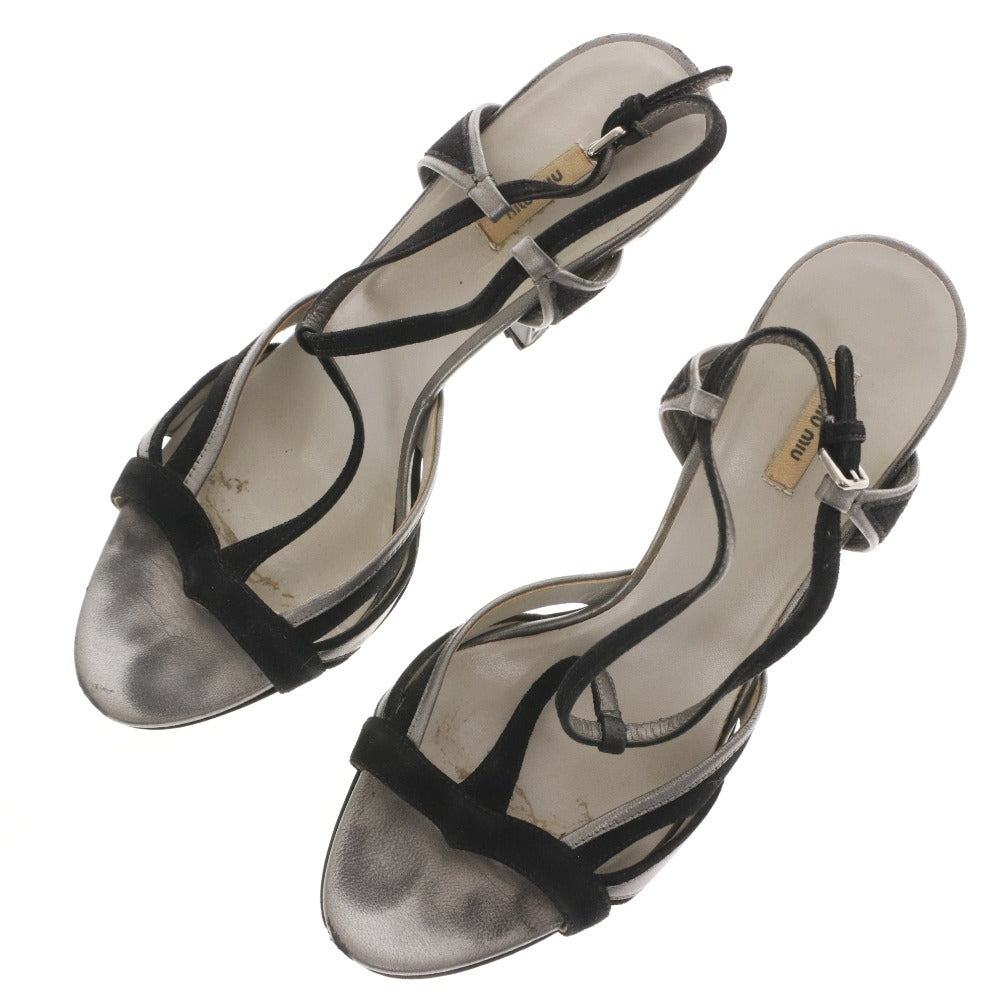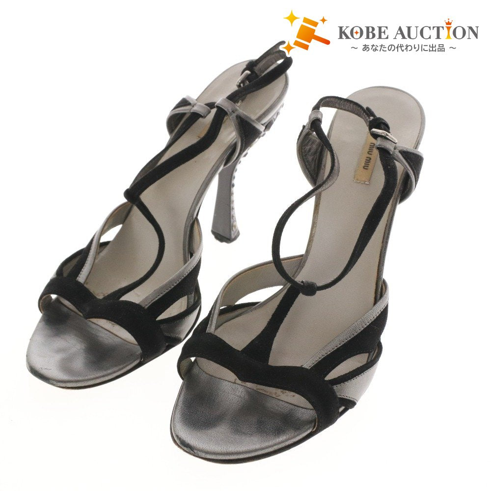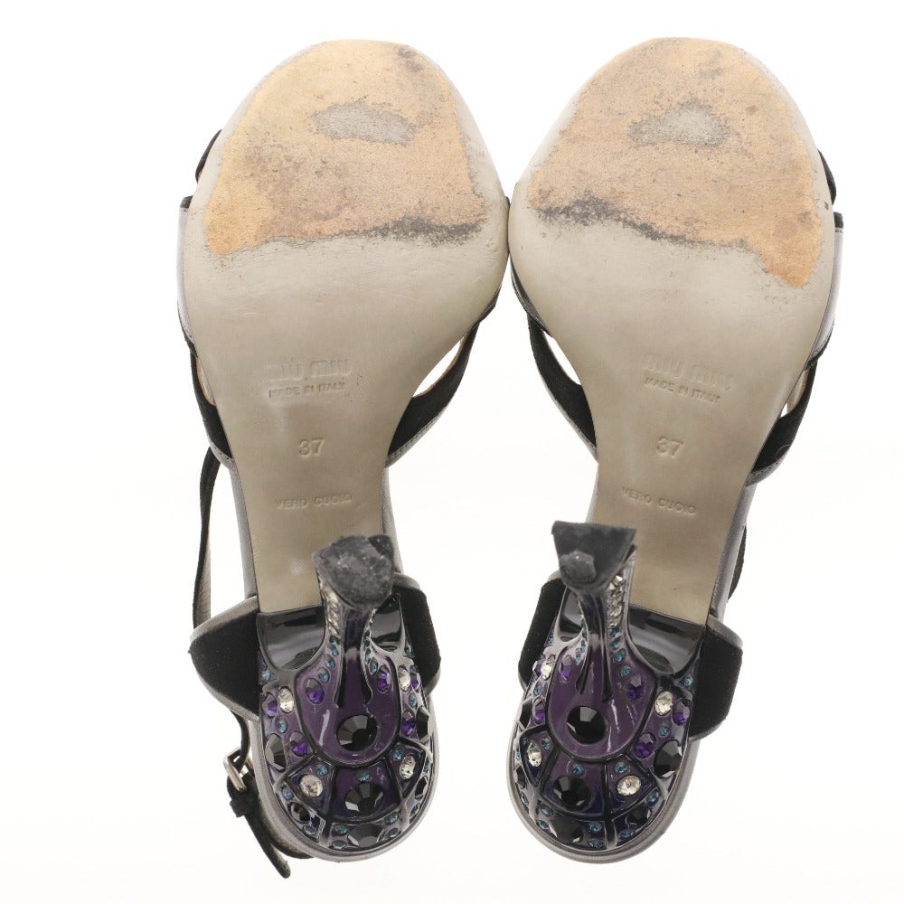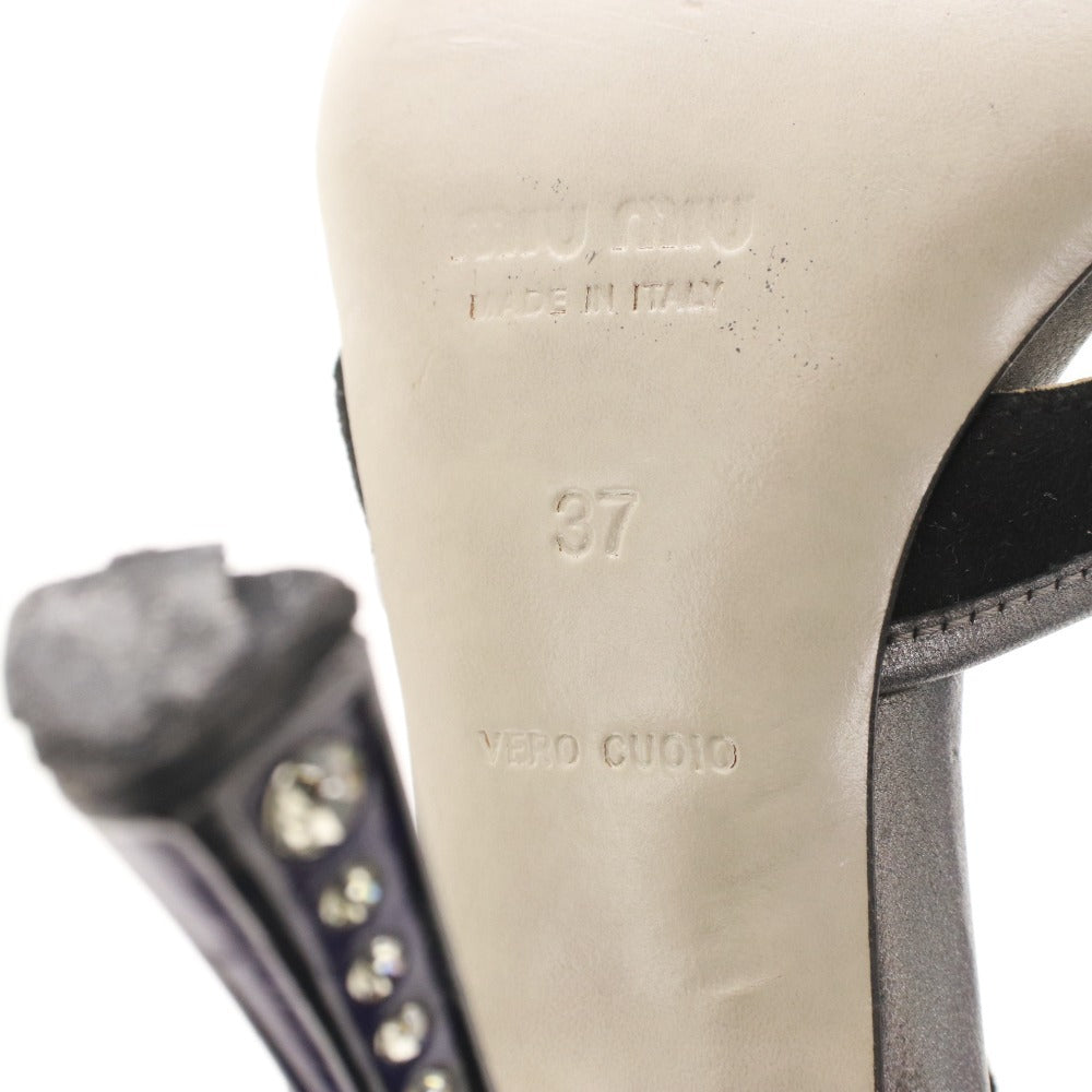 ミュウミュウ サンダル 靴 ピンヒール クリスタル ストラップ レディース 37 (24cm相当) ブラック シルバー
