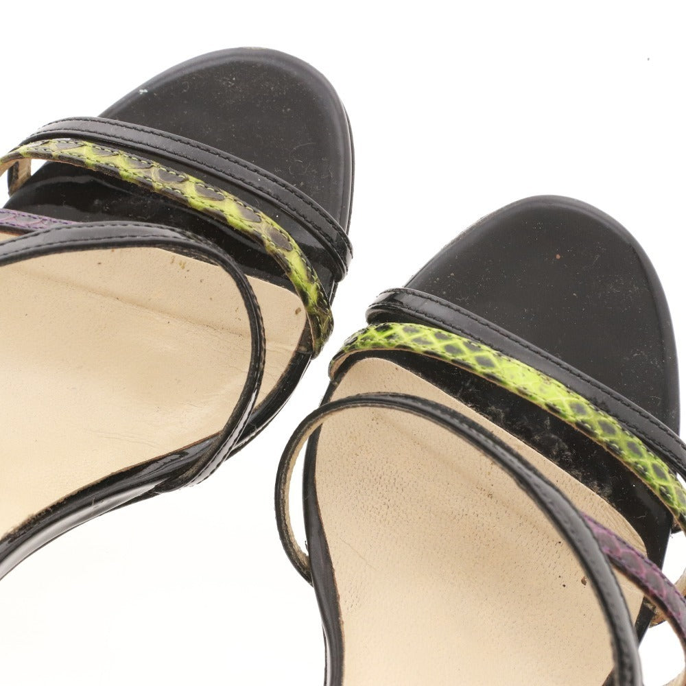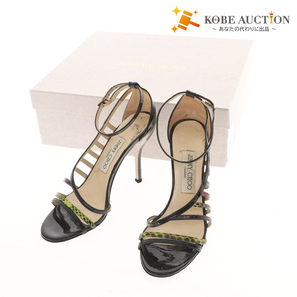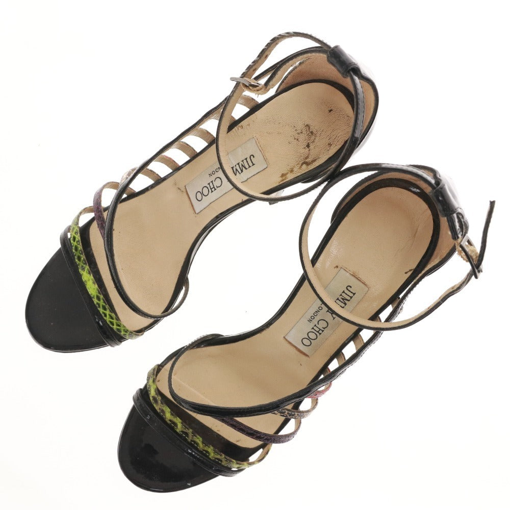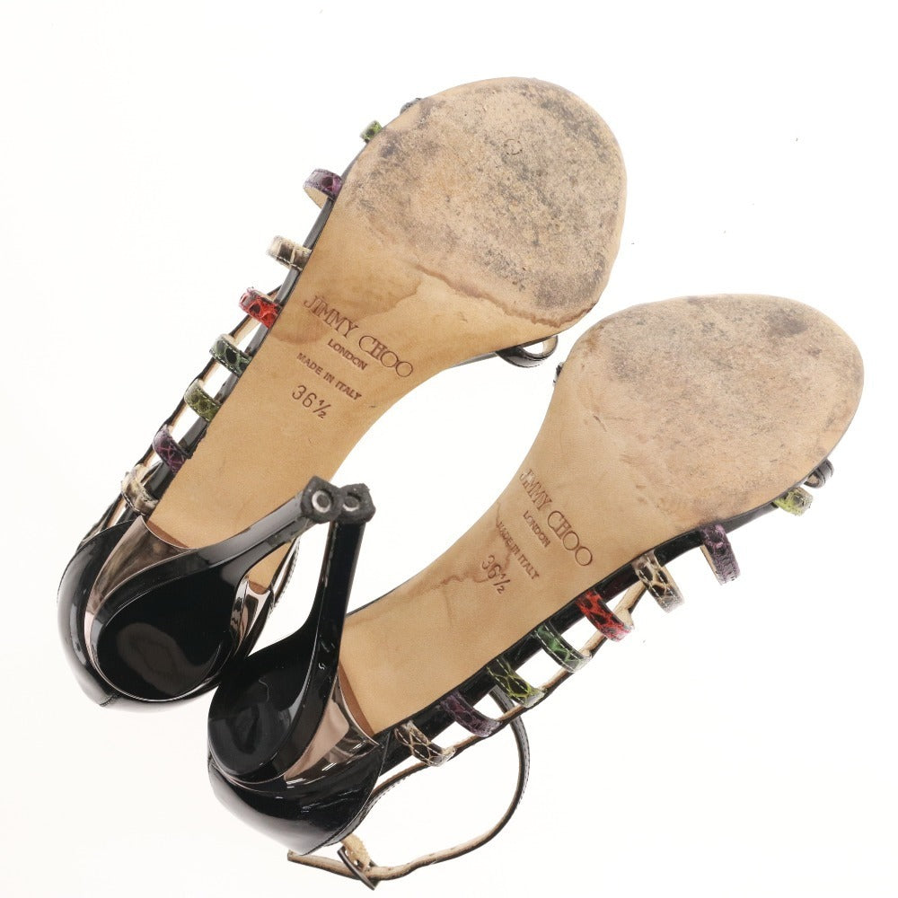 ジミーチュウ サンダル 靴 パテントレザー パイソン アンクルストラップ レディース 36.5 (23.5cm相当) ブラック 箱付き