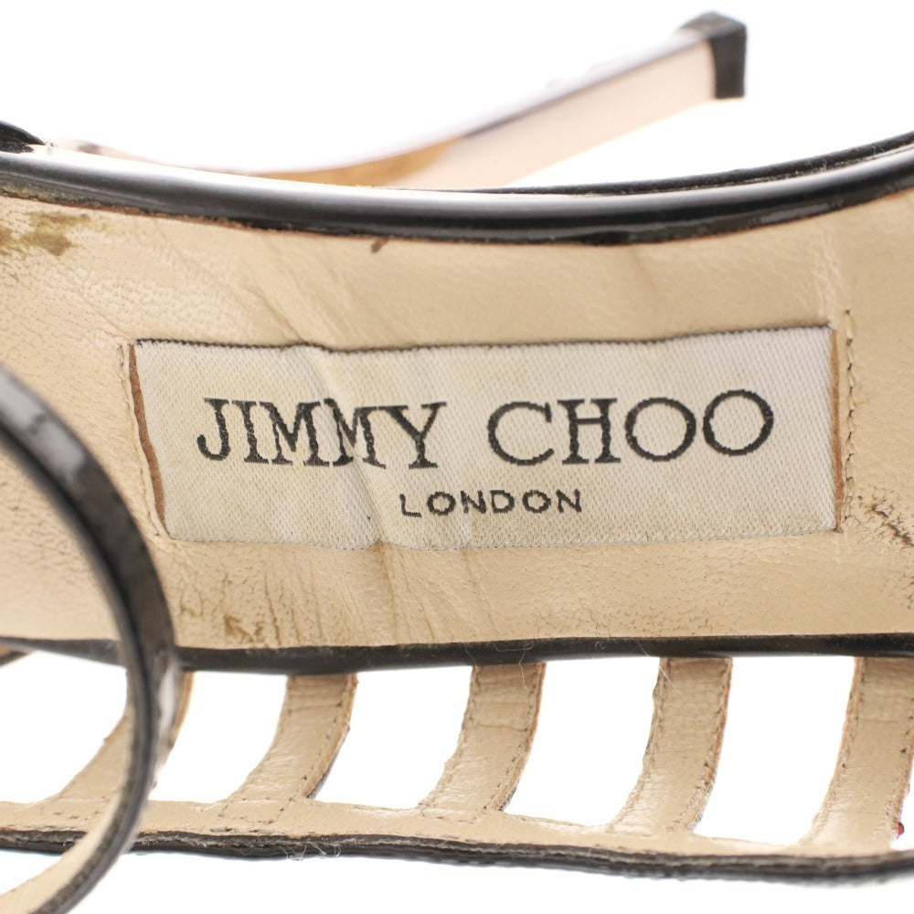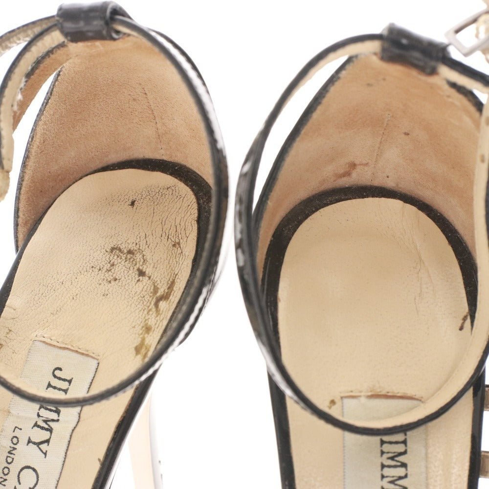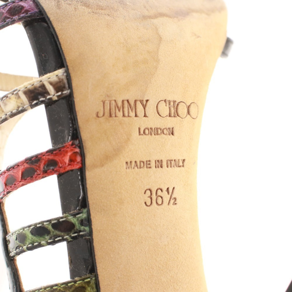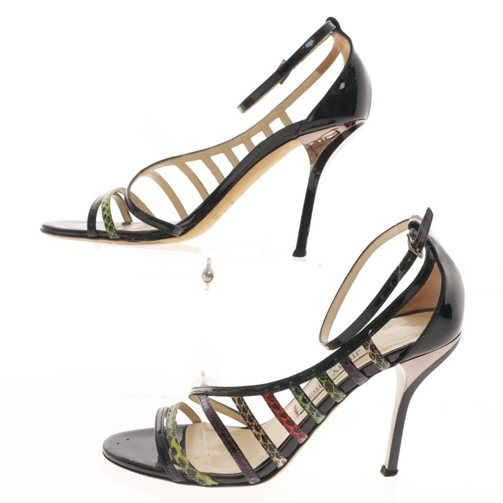 ジミーチュウ サンダル 靴 パテントレザー パイソン アンクルストラップ レディース 36.5 (23.5cm相当) ブラック 箱付き