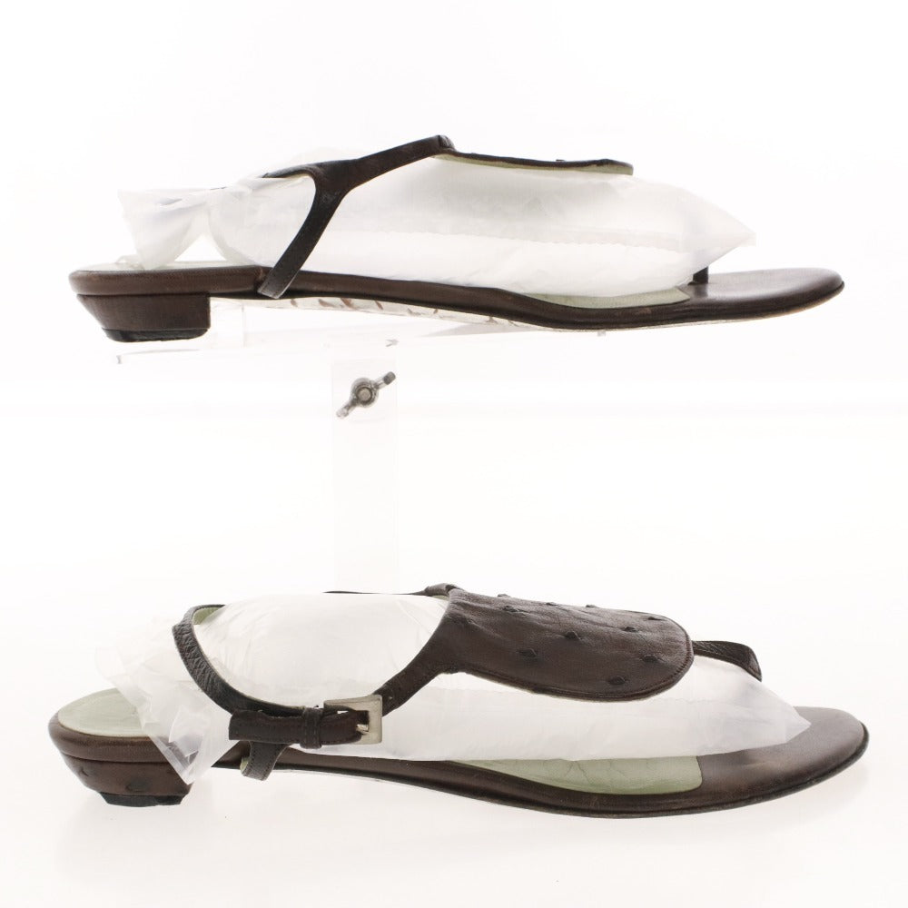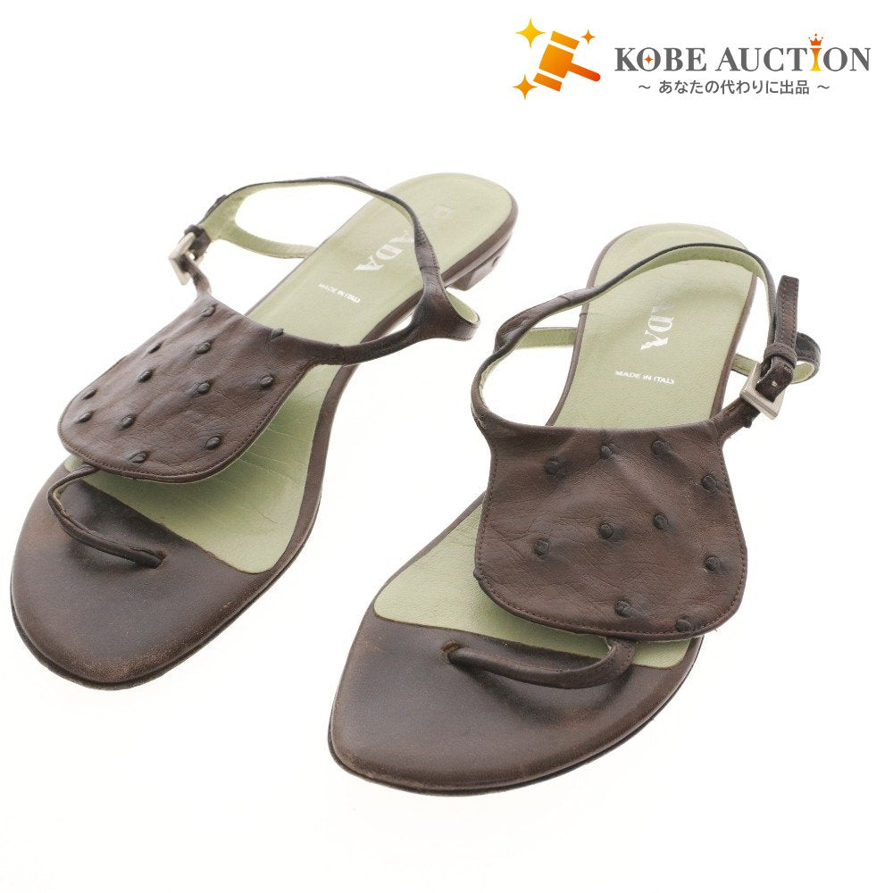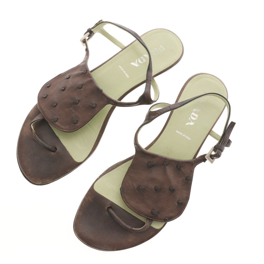 プラダ サンダル 靴 フラット オーストリッチ ストラップ トング レディース 36 (23cm相当) ブラウン