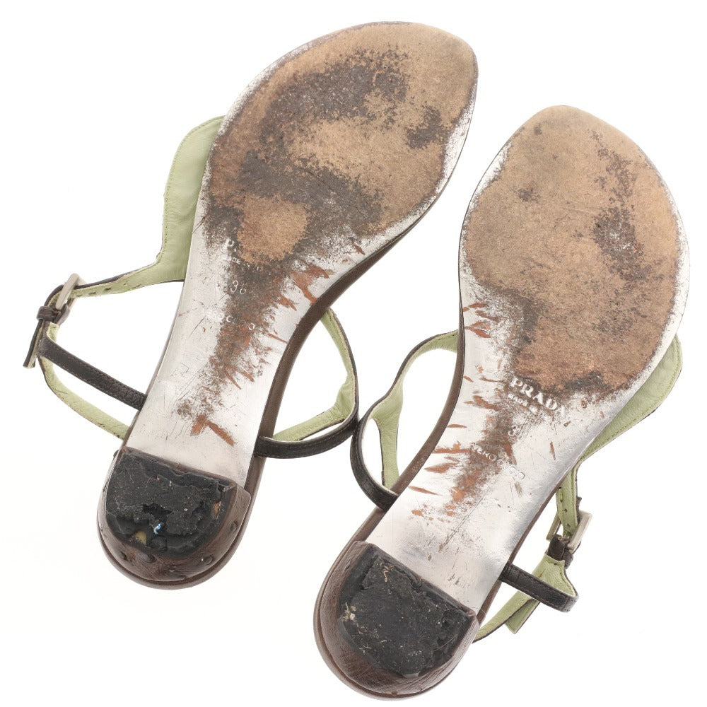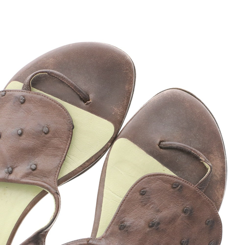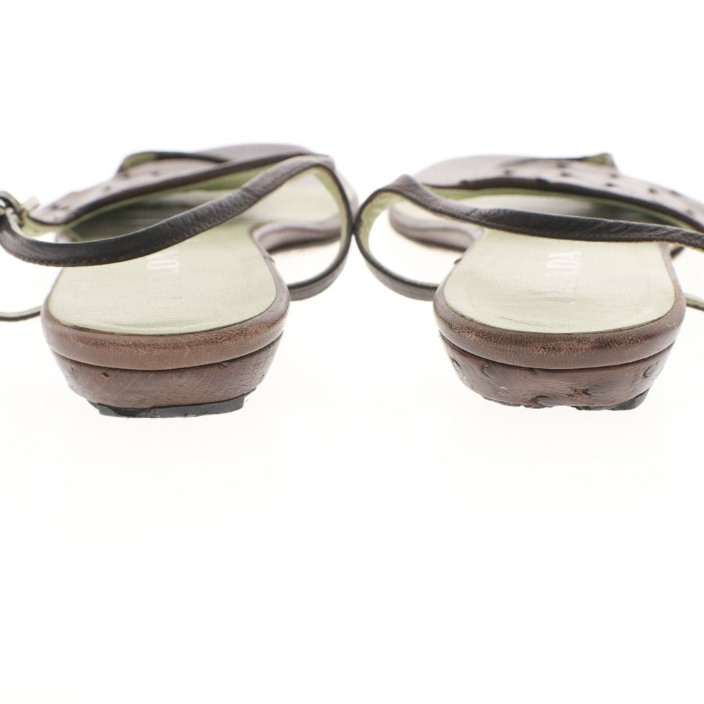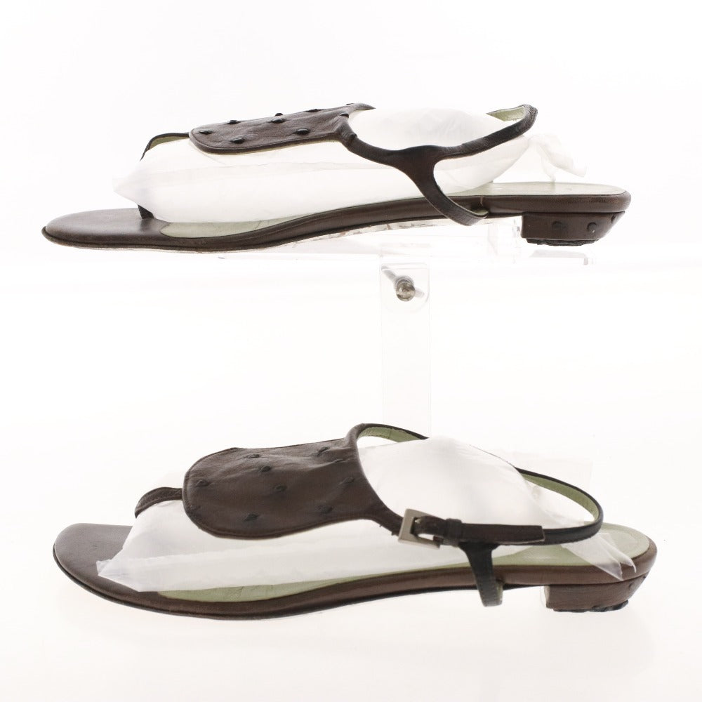 プラダ サンダル 靴 フラット オーストリッチ ストラップ トング レディース 36 (23cm相当) ブラウン