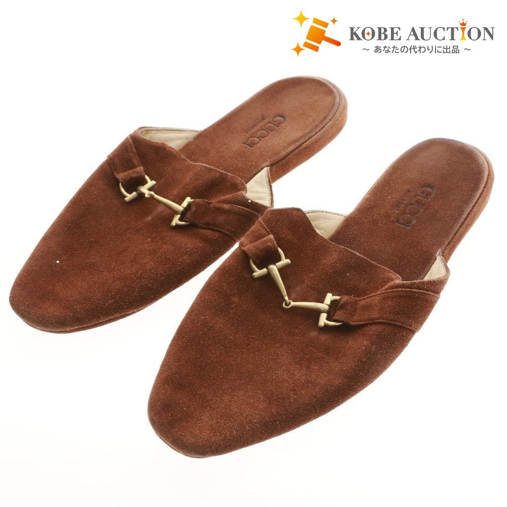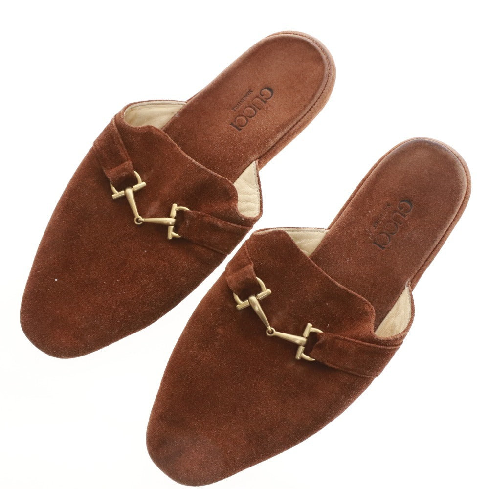 グッチ ミュール サンダル 靴 スエード ホースビット フラット レディース 36 (23cm相当) ブラウン