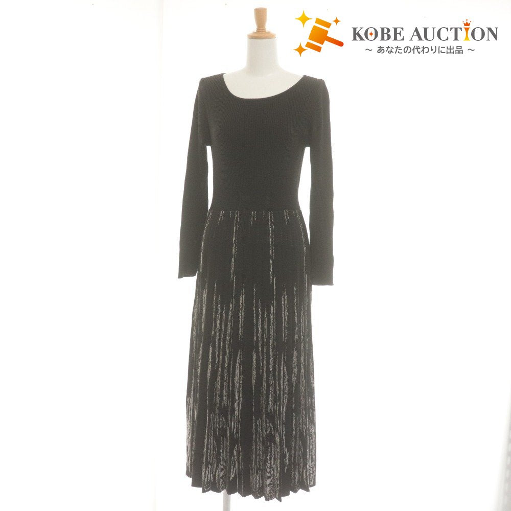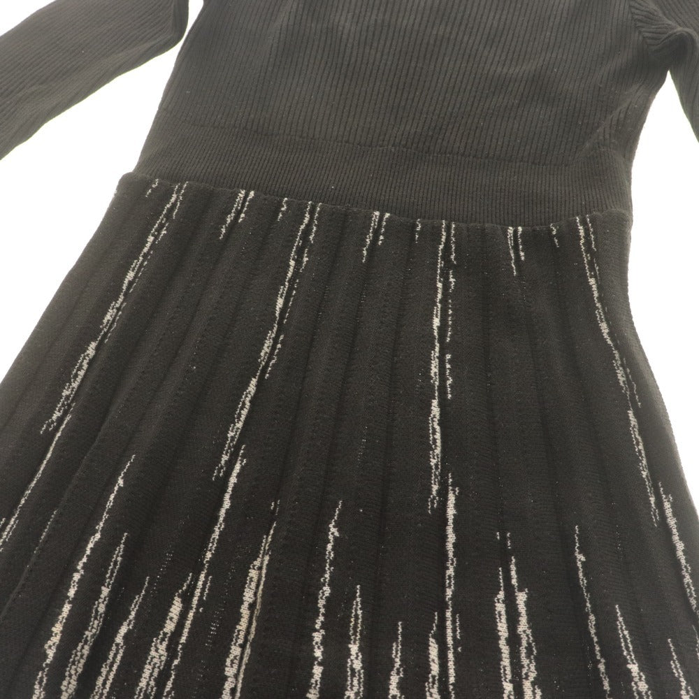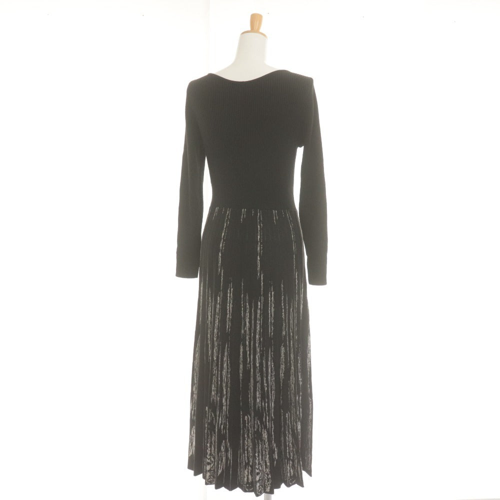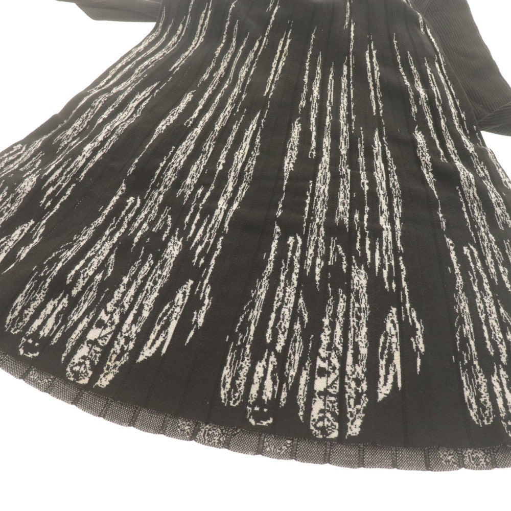 バーニーズ・ニューヨーク ロングワンピース ニット 長袖 トップス 総柄 日本製 レディース 38 (M相当) ブラック ホワイト 白黒