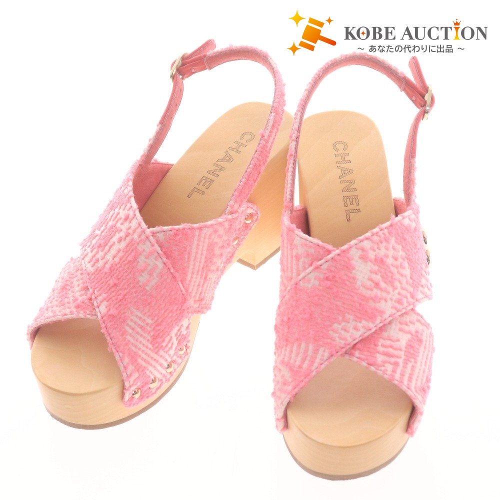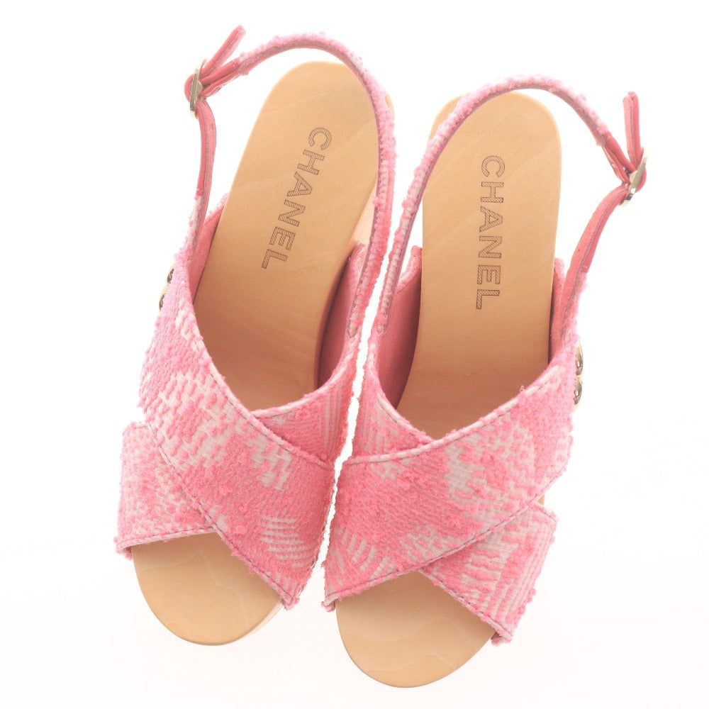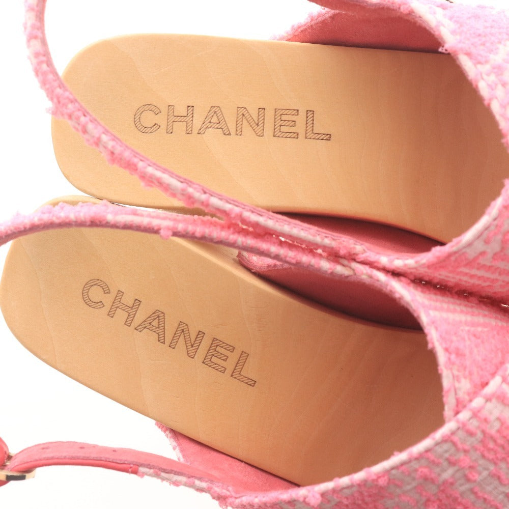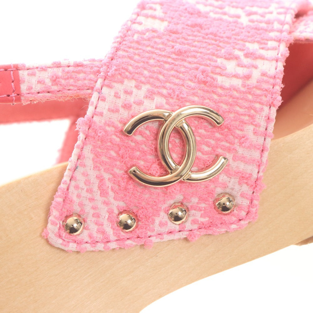 シャネル サンダル G45389 靴 ウェッジソール ツイード ココマーク クローバー レディース 35C (22.5cm相当)ピンク 箱付き