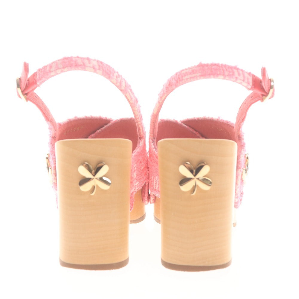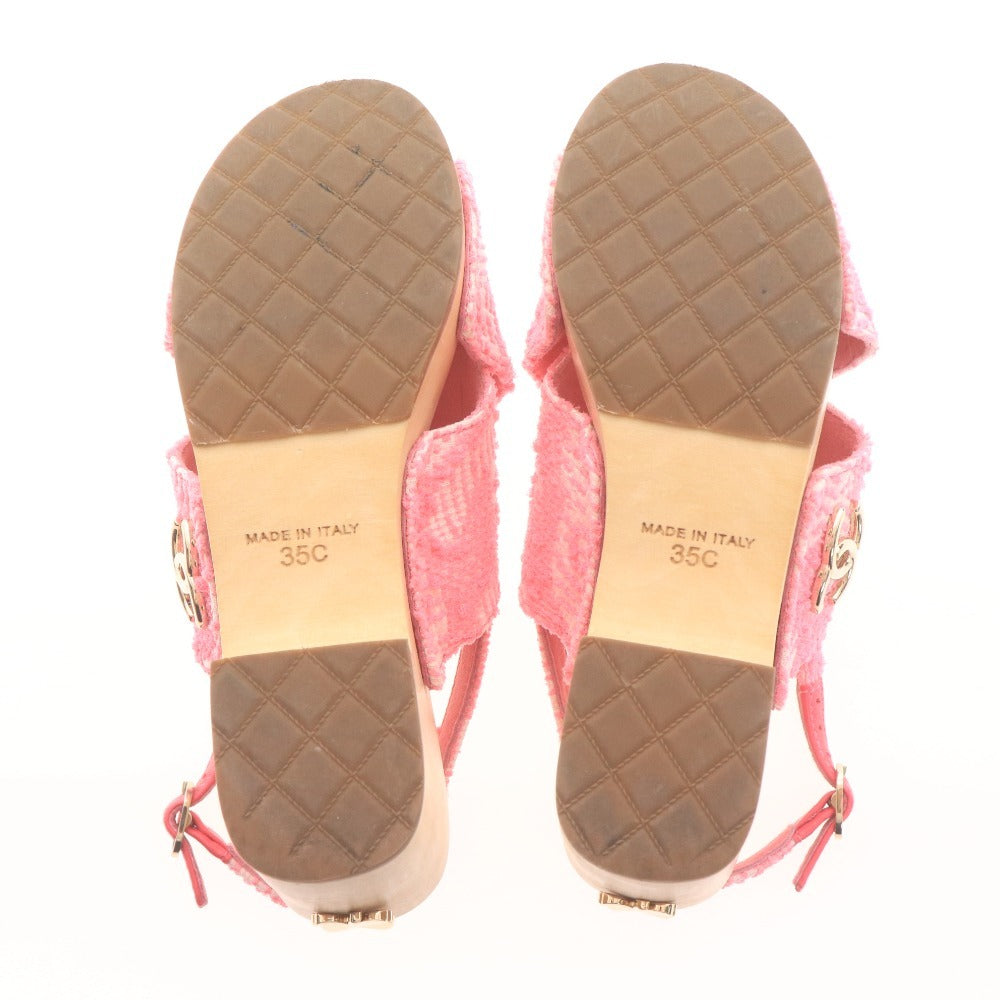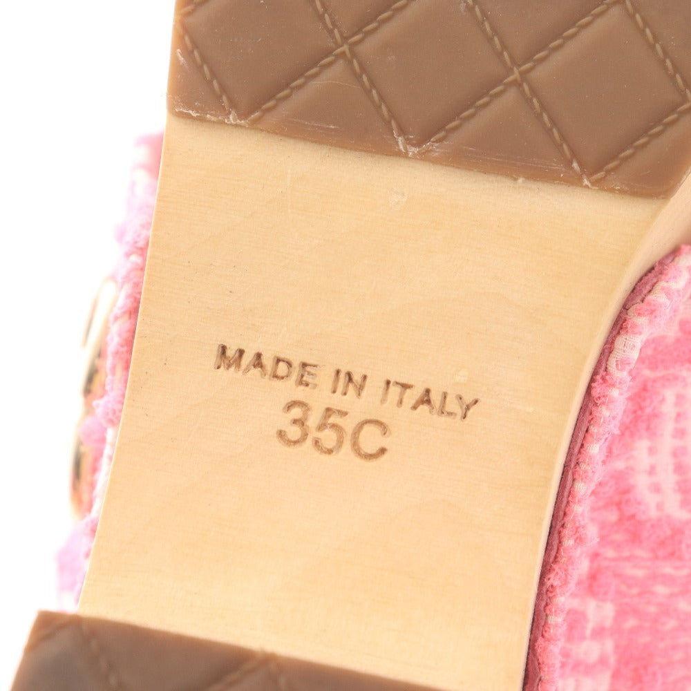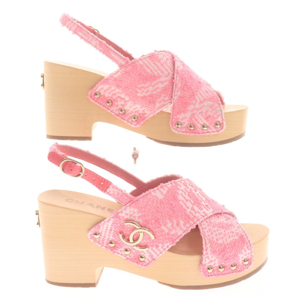 シャネル サンダル G45389 靴 ウェッジソール ツイード ココマーク クローバー レディース 35C (22.5cm相当)ピンク 箱付き
