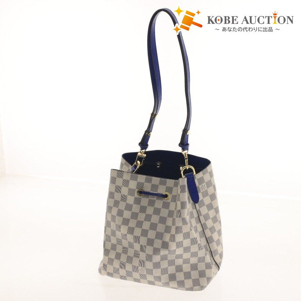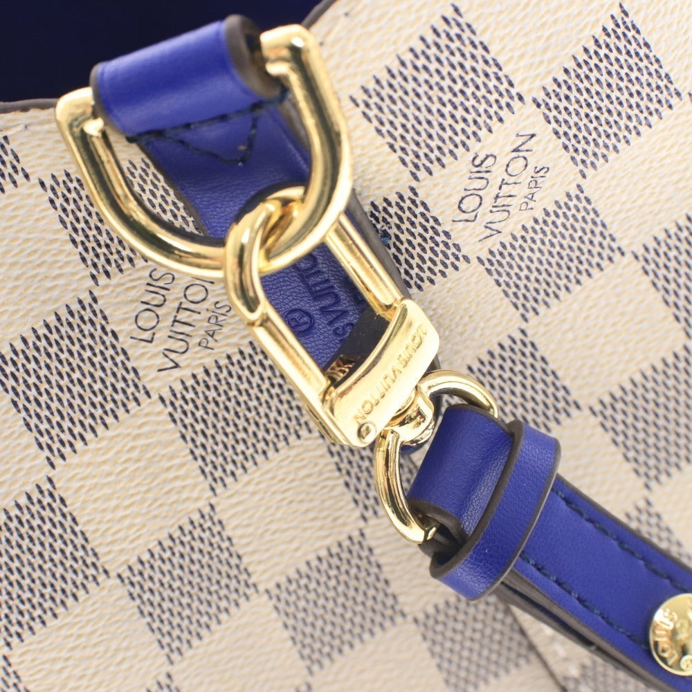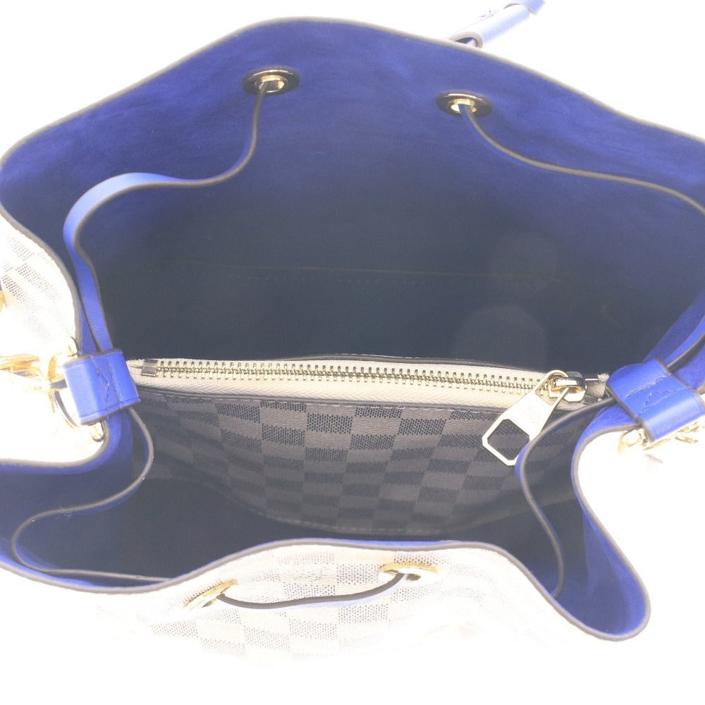 ルイヴィトン ダミエ・アズール ネオノエ ショルダーバッグ 鞄 ロゴ ゴールド金具 ファスナーポケット レディース ホワイト ブルー